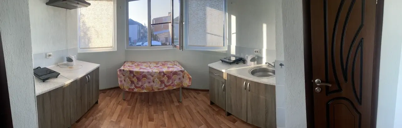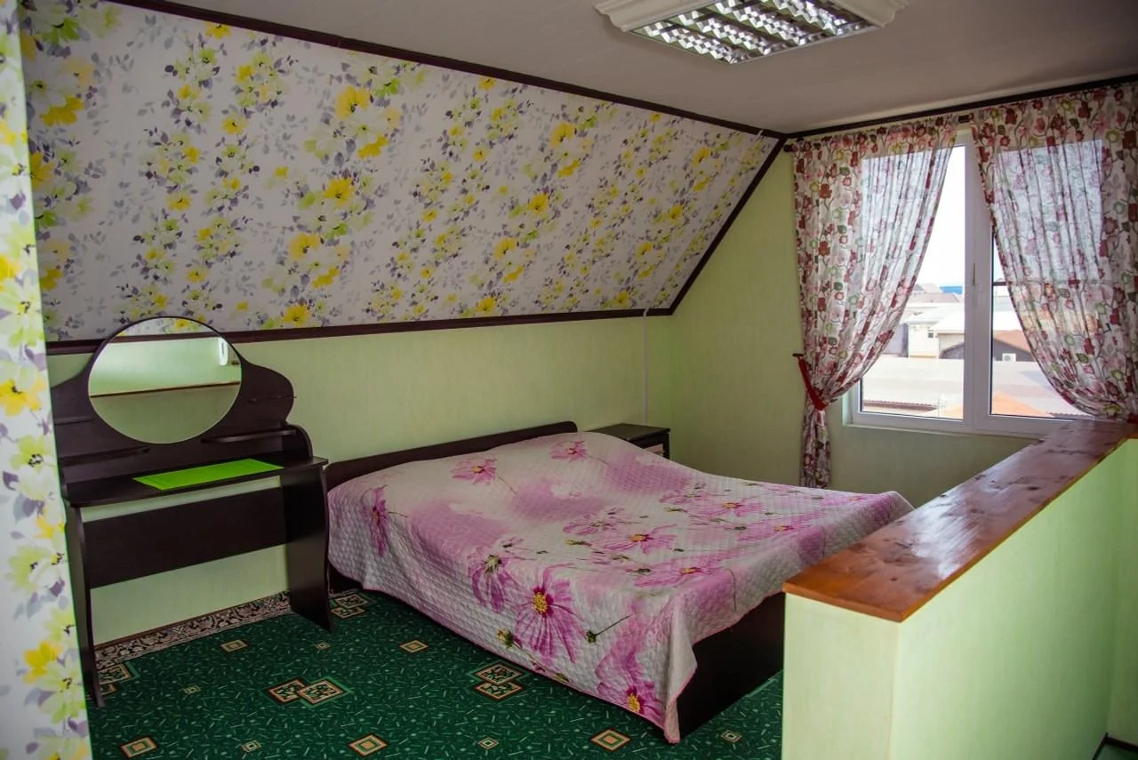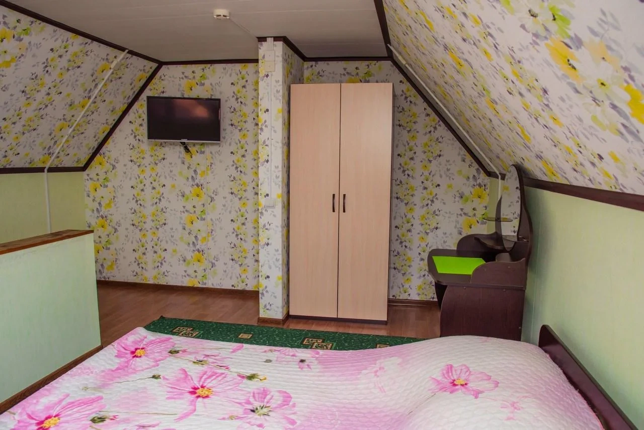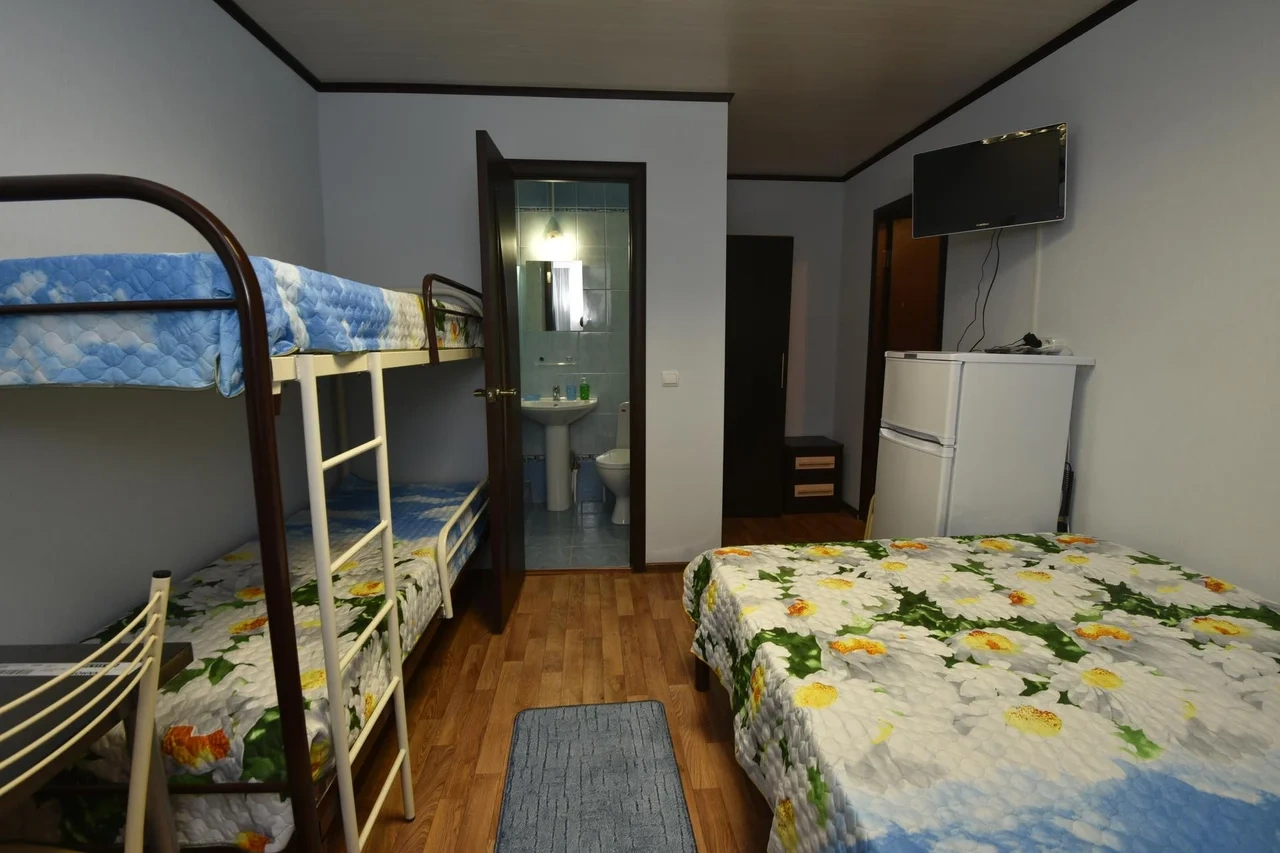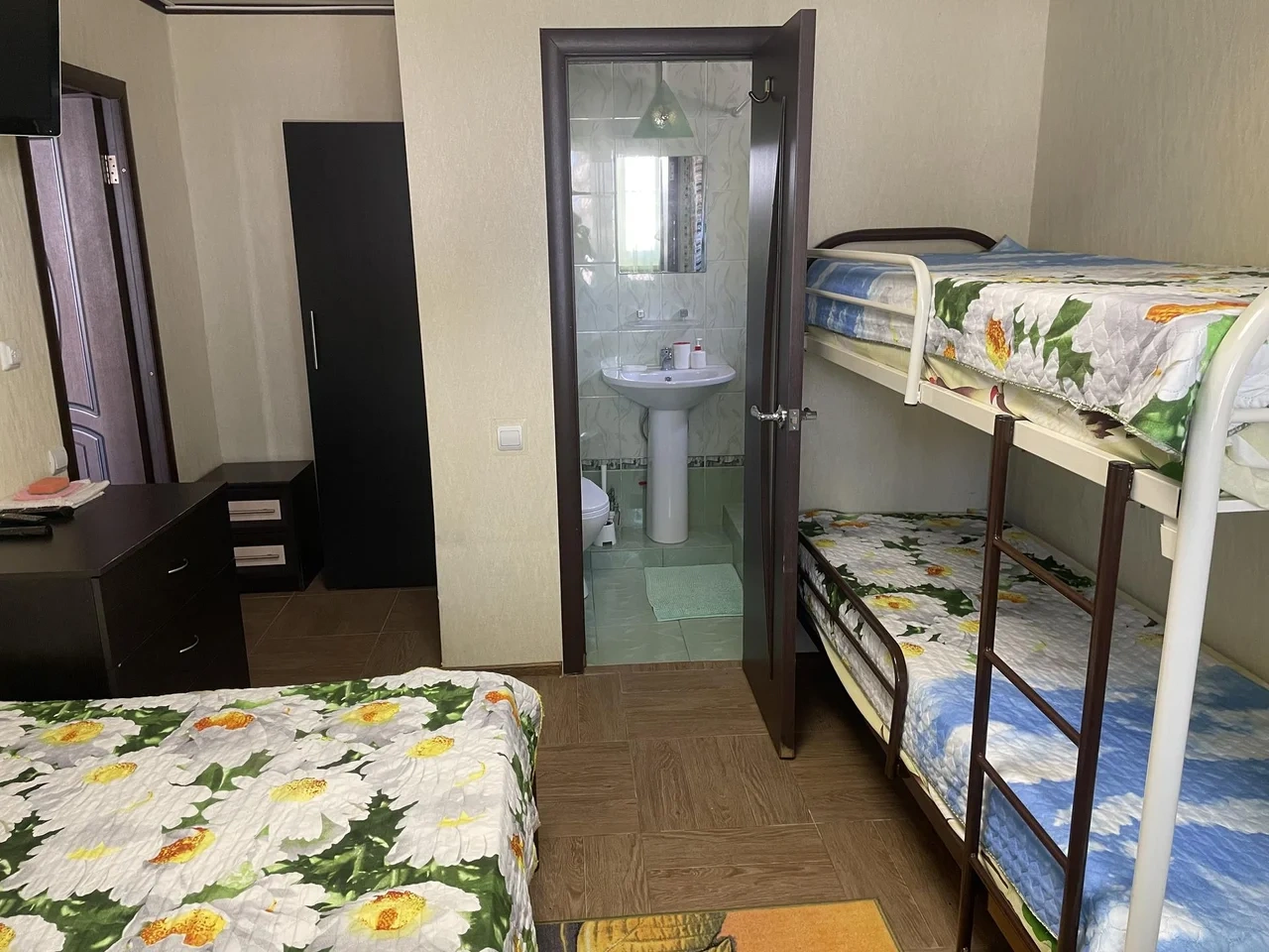 Предлагаем вашему вниманию 11благоустроенных 2-4-5-6 местных номеров. В некоторых номерах возможно размещение дополнительного места. В каждом номере душ, туалет, холодильник, сплит-система, телевизор, кухня. Территория ухожена, благоустроена - есть места для отдыха (3 крытые беседки со столиками и лавочками), детская площадка с качелями, горкой, скалолазкой, спортивным комплексом и батутом. Во внутреннем дворике фонтан с небольшим водоемом, Имеются мангалы для приготовления шашлыка и барбекю (все необходимое есть в наличии). Мы находимся на берегу канала, поэтому не забывайте удочки и рыбалка прямо на территории гостевого дома. Если Вы хотите отдохнуть двумя семьями, у нас есть возможность размещения Вас и Ваших друзей в номерах с отдельной просторной кухней, которая одновременно может служить проходом между номерами, не проходя через общий коридор, и вы можете наслаждаться общением друг с другом наиболее комфортно.