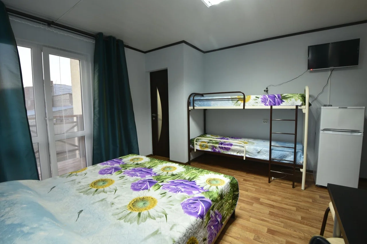 Очень уютный четырёхместный номер, все удобства в номере, отдельный выход на кухню. Балкон с красивым вином на внутренний двор.