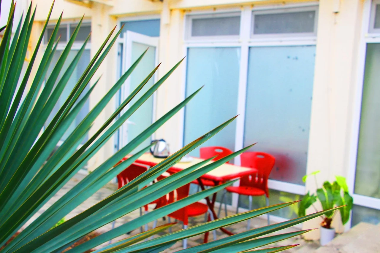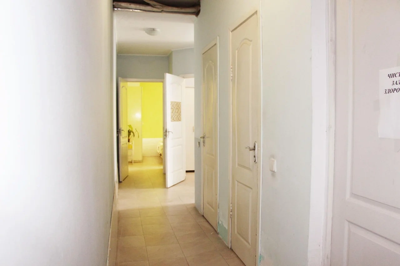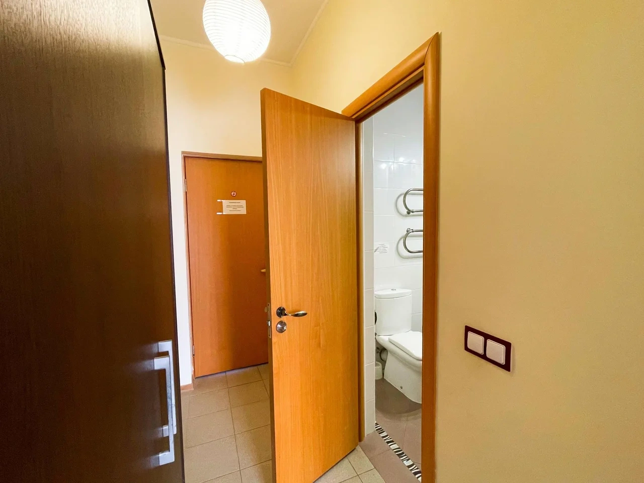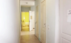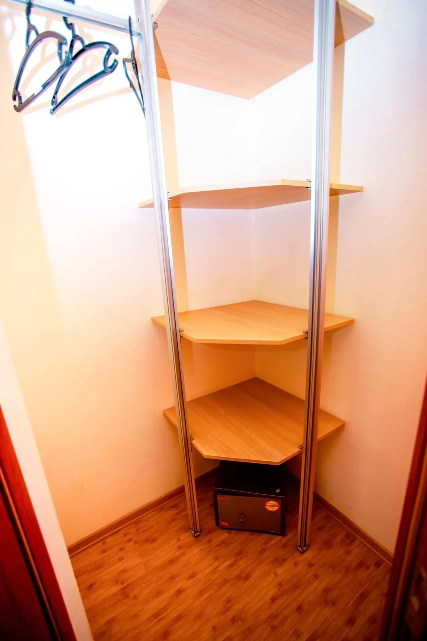 Однокомнатный номер с двуспальной кроватью и двумя односпальными кроватями. В номере: стол, стул, прикроватные тумбочки, шкаф , телевизор, холодильник, журнальный столик, сушилка для белья. Площадь номера 18м2. Санузел в номере, отдельно расположена душевая кабина за шторой. Номер расположен на уровне земли и имеет два входа с улицы, и из общего коридора. В распоряжении гостей общая обеденная зона с набором посуды, микроволновкой и куллером с кпятком.