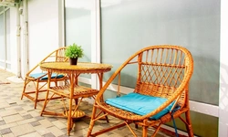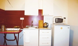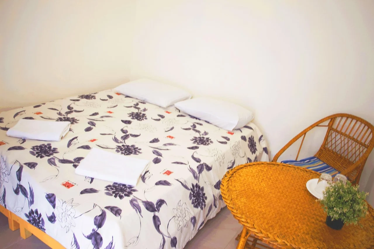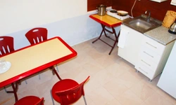 Двухместный номер с двумя раздельными кроватями и собственным санузлом. В номере шкаф, столик с креслом, телевизор. Кухня для самостоятельного приготовления на две семьи. Номер расположен в отдельном домике у бассейна.