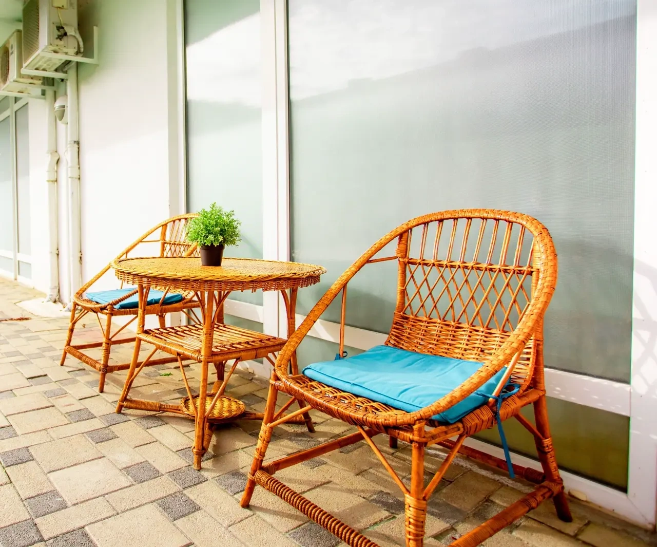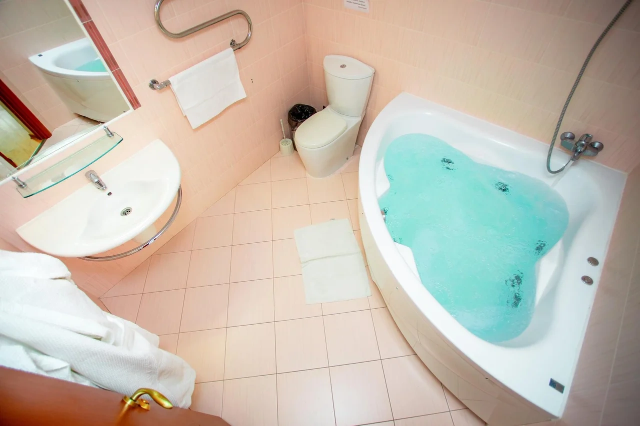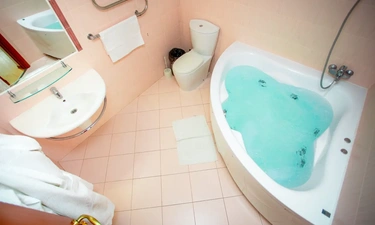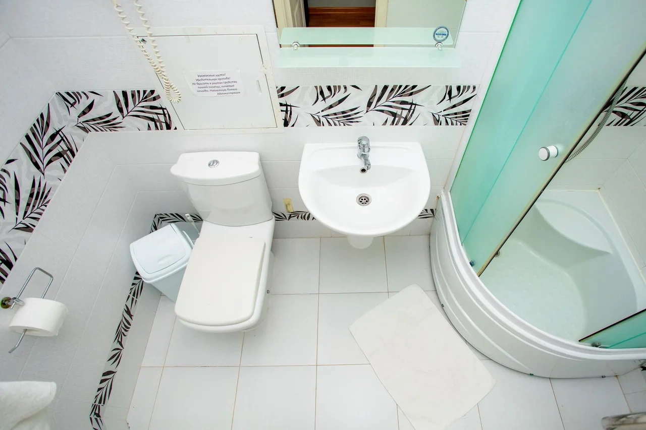 В номере две изолированные комнаты и мини кухня. В одной комнате двуспальная и односпальная кровати, стол, зеркало, прикроватные тумбочки. Во второй двуспальный угловой диван, кресло-кровать, тумба, телевизор. В прихожей шкаф. Кухня оборудована жарочной панелью, чайником и холодильником, необходимой посудой и столовыми приборами. В санузле ванная. Однокомнатный номер с двумя односпальными кроватями (сдвинуты, можно раздвинуть) или двуспальной кроватью, во многих номерах установлена дополнительная кровать. В номере: стол, 2-е табуретки, прикроватные тумбочки, шкаф , телевизор, холодильник, сплит – система, сан. узел с душевой. Площадь номера 40м2. На балконе стол и два стула. Москитные сетки на окнах. Сплит-системы в каждой комнате.