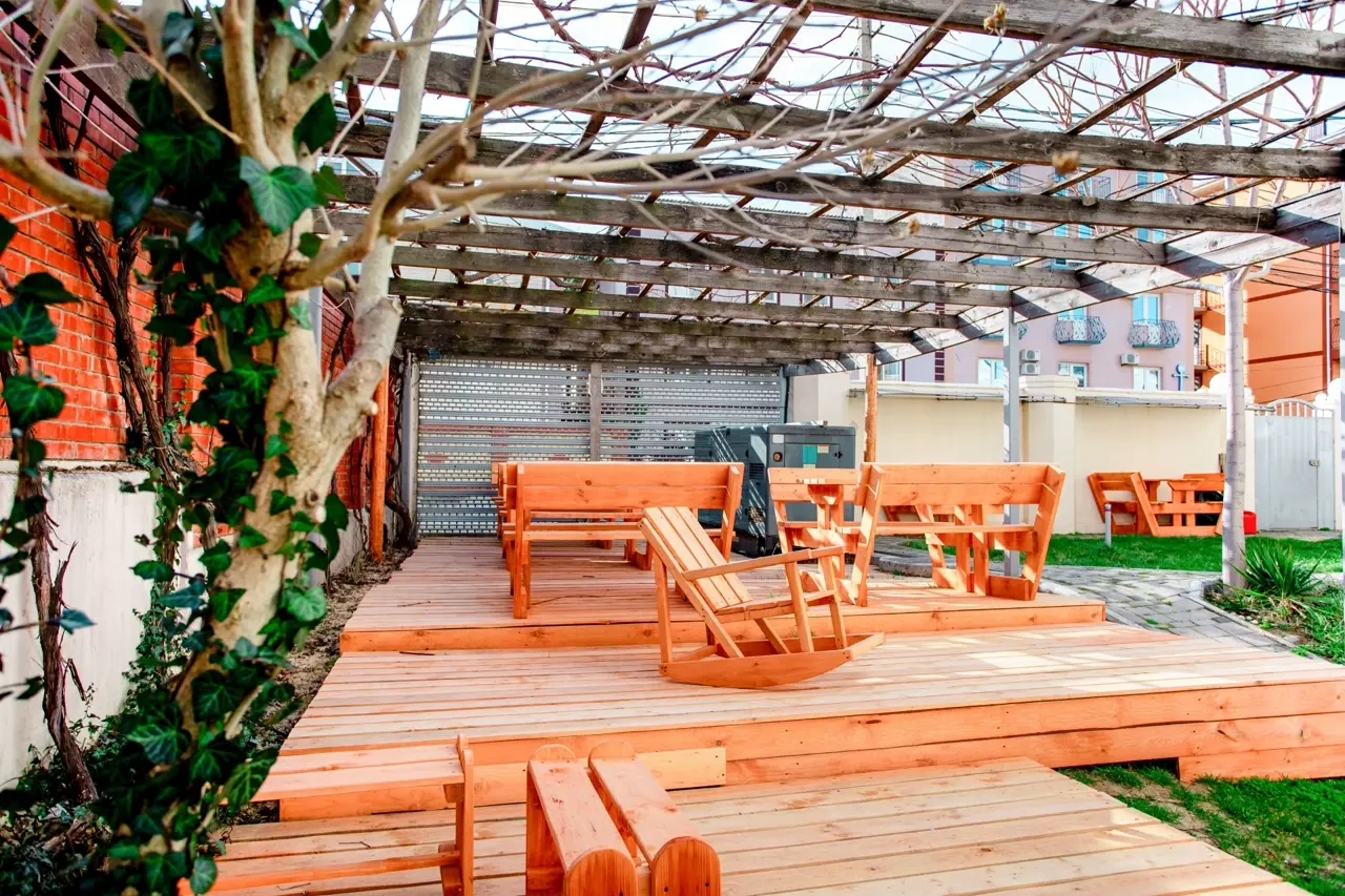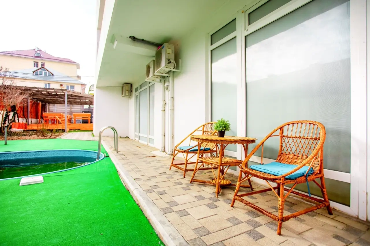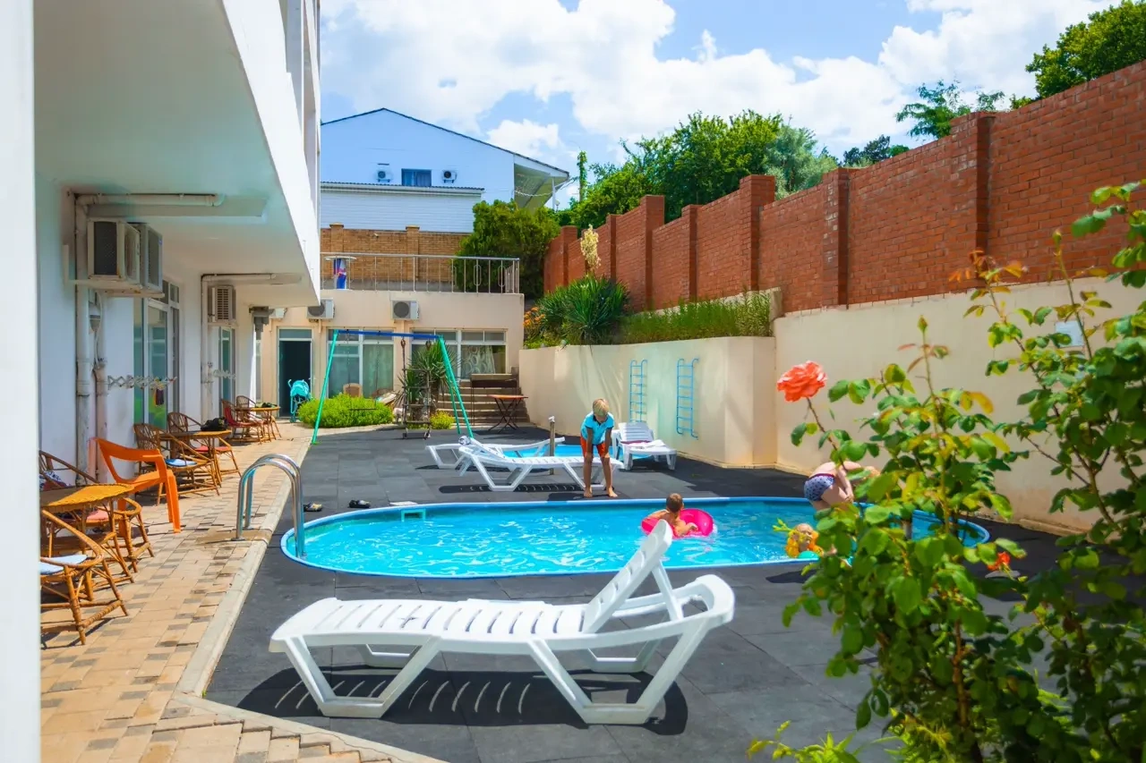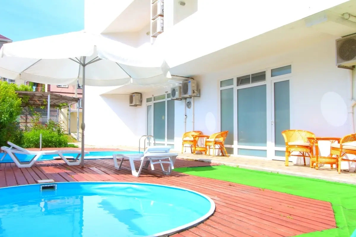 Для вашего комфортного отдыха мы предусмотрели все: бассейн с подогревом и детской зоной, беседки для отдыха, зону барбекю, детскую анимацию два раза в неделю. Для Вашего удобства предусмотрена лаунж зона, Вы можете самостоятельно приготовить напитки и воспользоваться микроволновой печью, где оборудована обеденная зона, есть стульчики для кормления детей. Кроме того, в гостинице бесплатно предоставляются детские кроватки, есть детская площадка, игрушки, библиотека, дежурная аптечка, утюги, фены. За дополнительную плату, осуществляем трансфер.