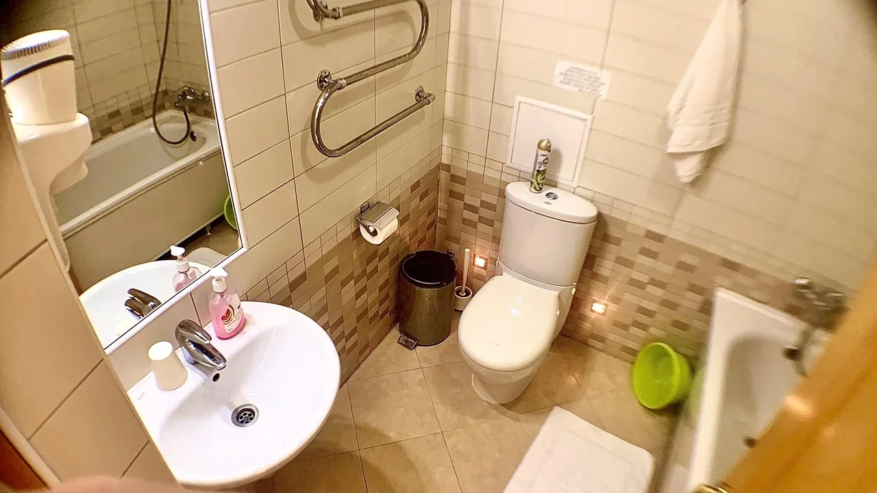 Однокомнатный номер с двуспальной и односпальной кроватями площадью 16м2. В номере: прикроватные тумбочки, шкаф , телевизор, холодильник, сплит – система, сан. узел с ванной. На балконе стол и два стула, сушилка для белья. Москитные сетки на окнах.