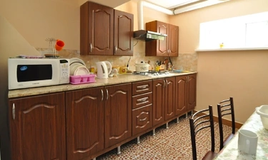 Для наших отдыхающих, желающих самостоятельно готовить имеется кухня со всей необходимой посудой и утварью и большой обеденный зал. Бытовые и коммунальные условия хорошие, все предусмотрено для Вашего удобства.