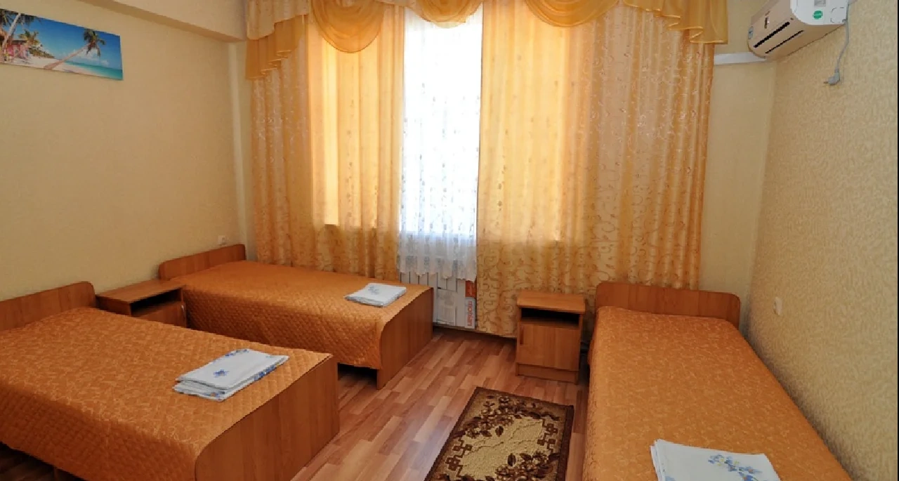 Гостиница состоит из 3х этажей, рассчитан на 10 номеров – 30 человек. Каждый номер оснащен следующими удобствами: санузел (душ, туалет), телевизор, сплит-система, (холодильник, вентилятор (по желанию)), практичная мебель (кровати, шкаф, тумбы). Помещение и вся территория находятся под видеонаблюдением.