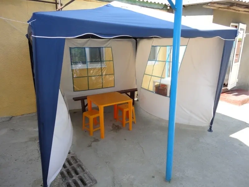 Гостевой дом находится от пляжа в пяти минутах езды на маршрутке. Для проживания имеются номера категории "стандарт" и "полулюкс". Во всех номерах установлены сплитсистемы, холодильник, телевизор. На территории есть общая кухня, стиральная машинка, гладильная доска, утюг, wi-fi интернет, мангал, автостоянка.