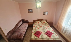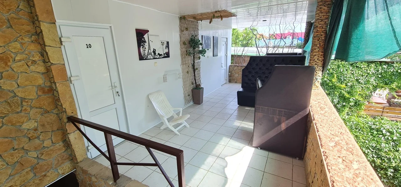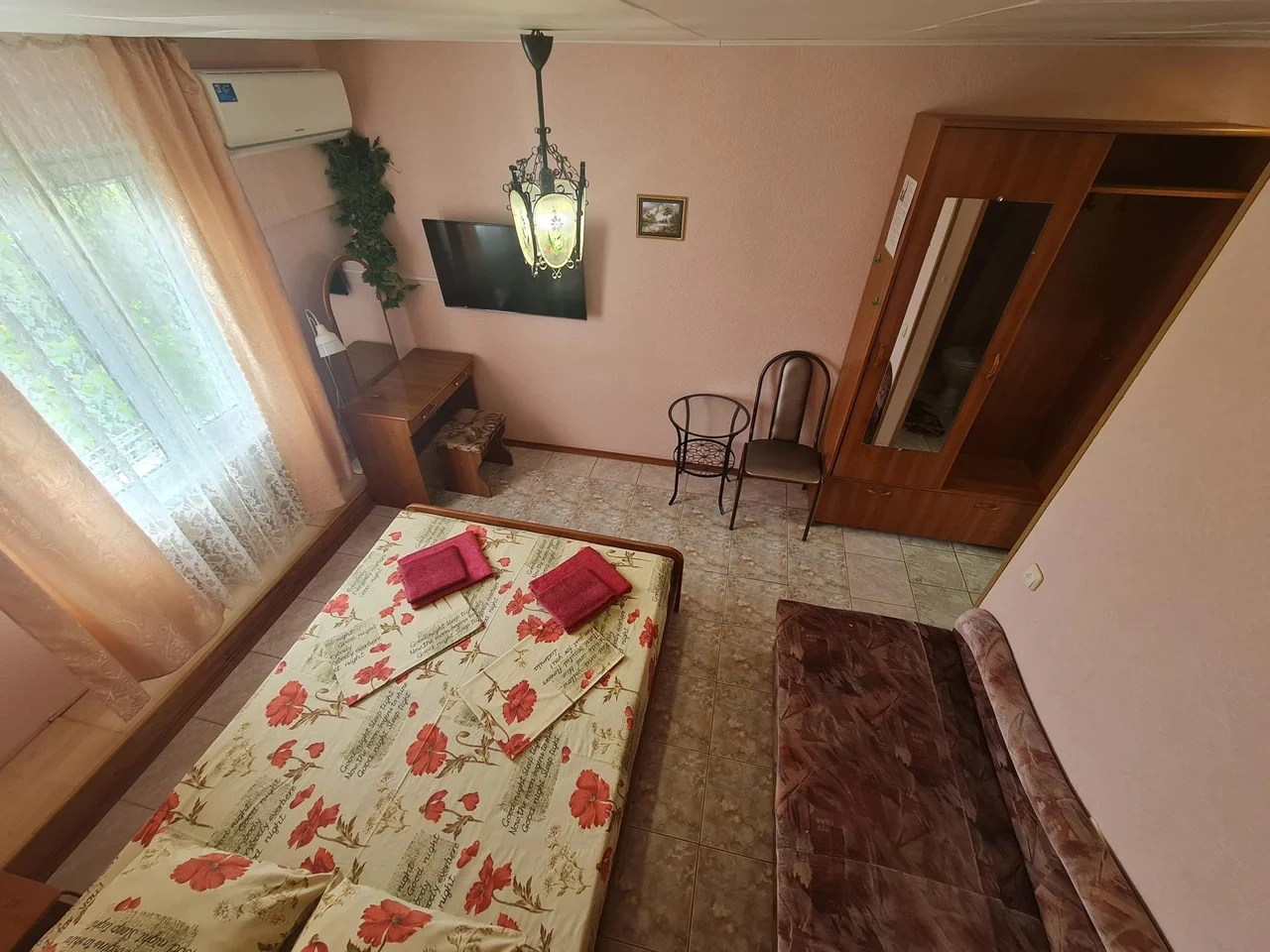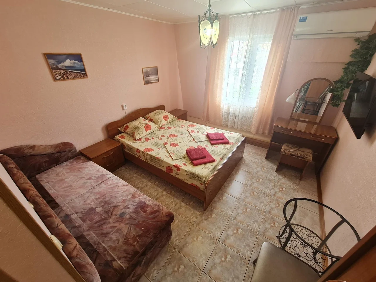 Гостевой дом находится в 550 метрах от моря. Есть двух-, трех-, четырехместные номера  с удобствами в номере и категории "люкс". Во всех номерах есть телевизор, , кондиционер, холодильник, бесплатный доступ к интернету Wi-Fi. На территории имеется большой цветущий двор, общая кухня, детская площадка, столики, скамейки, шезлонги, мангал, обеденная зона, утюг, гладильная доска. По желанию организуется 3-х разовое питание, трансфер от/до гостевого дома, услуги такси.