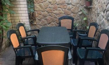 В доме есть общая кухня, много мест, чтобы удобно расположиться и пообедать.