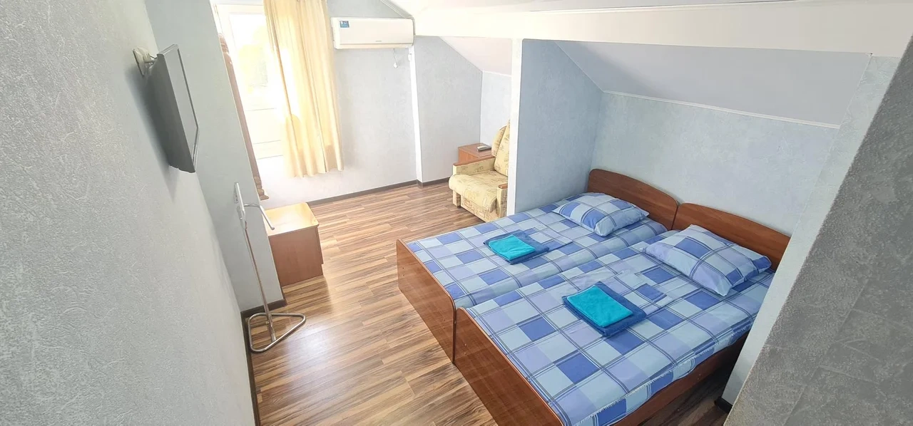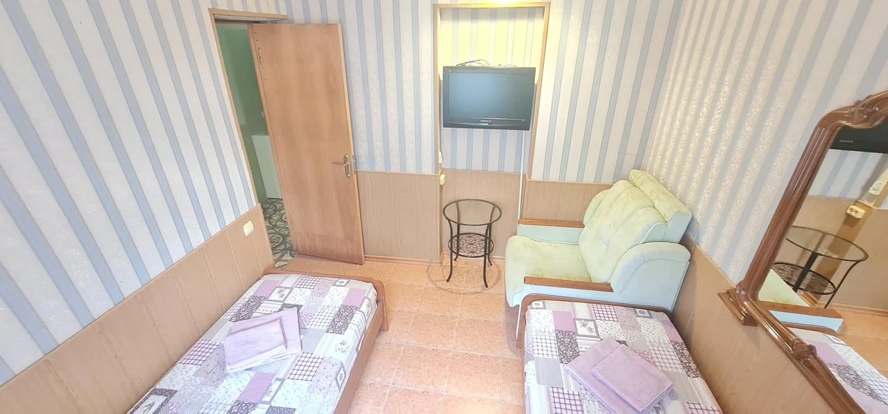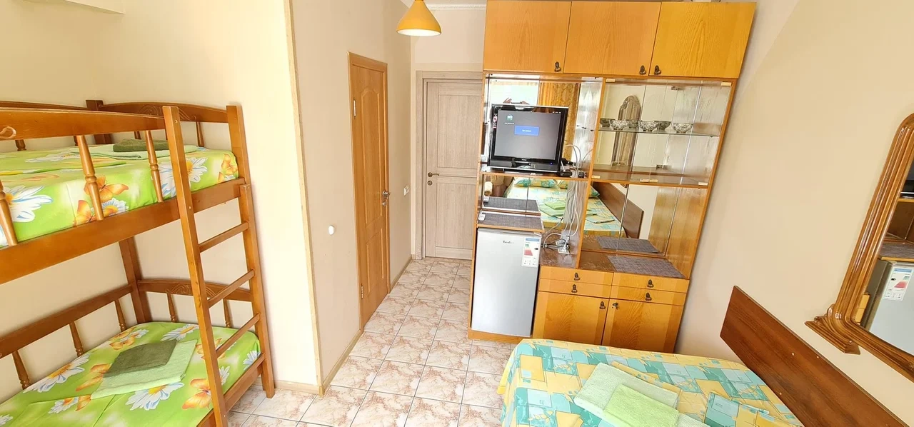 Отдыхали 07.2023 в трёхместном номере. Очень понравилось расположение - до моря и аквапарка 10-15 минут, рядом много столовок, супермаркетов.