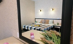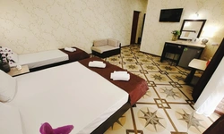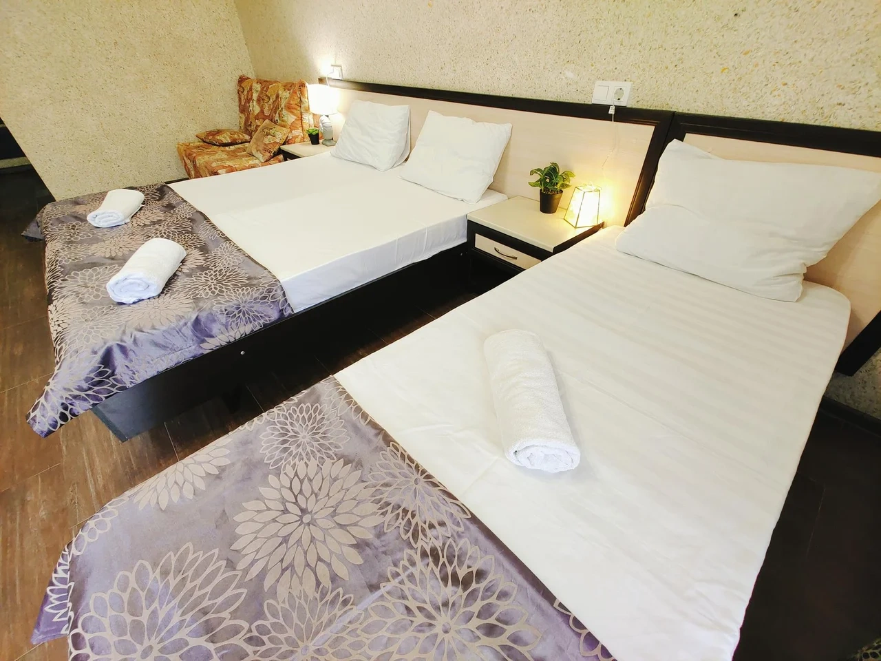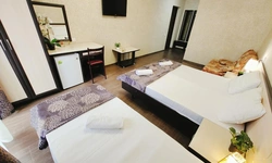 Прекрасный, светлый 3-х местный номер с балконом. В номере есть двуспальная кровать, кресло-кровать, прикроватная тумбочка, туалетный столик, шкаф, ТВ, мини-холодильник, кондиционер, сушка. В номере расположена своя ванная комната с душевой кабинкой.