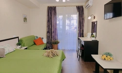 Просторный и светлый номер с балконом. В номере расположена двуспальная кровать, двуспальный диван (120х200), прикроватная тумбочка, туалетный столик, шкаф, ТВ, кондиционер, мини-холодильник, сушка. В номере своя ванная комната с душевой кабиной.