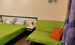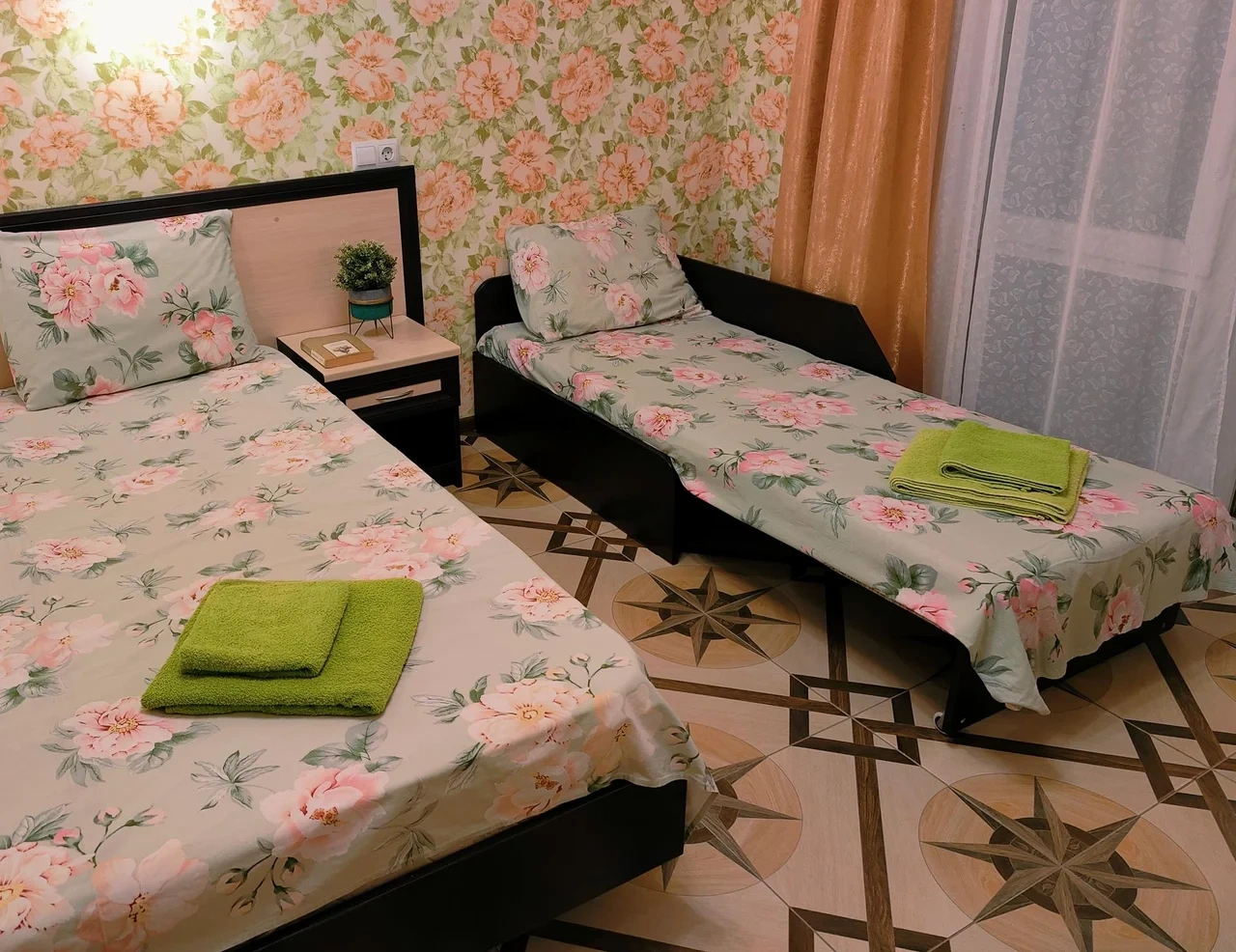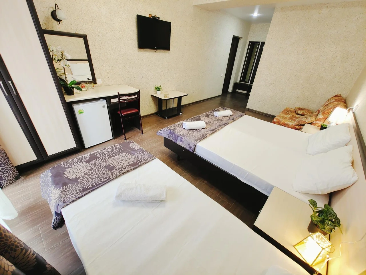 Просторный и светлый 4-х местный номер с балконом. В номере: двуспальная кровать, двуспальный диван (120х200), прикроватная тумбочка, туалетный столик, вешалка, шкаф, ТВ, кондиционер, мини-холодильник, сушка. Ванная комната с душевой кабинкой.