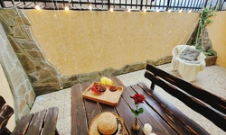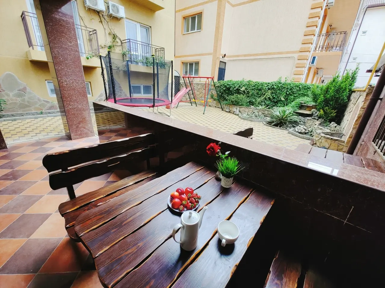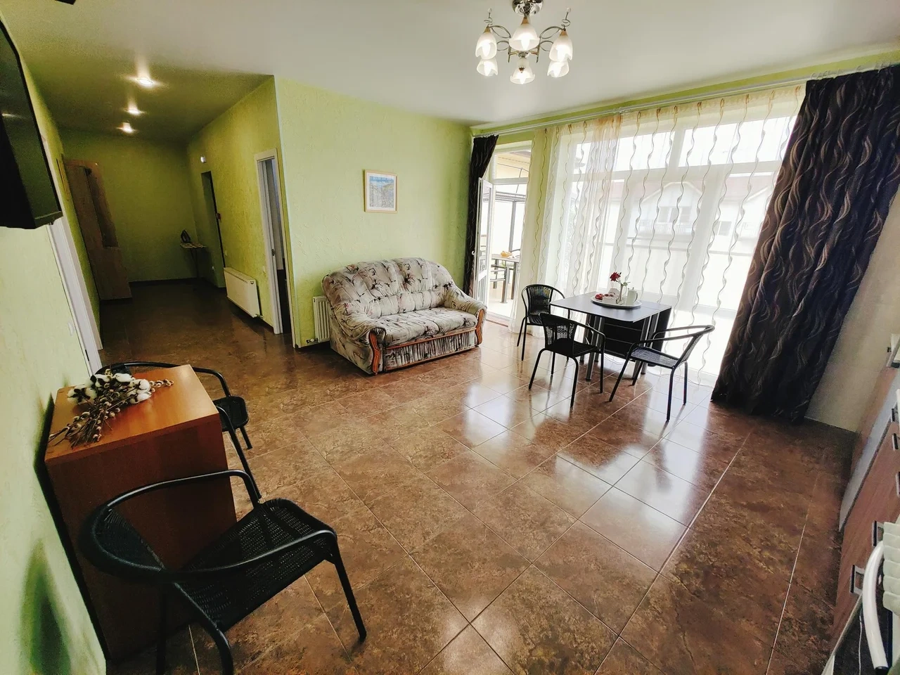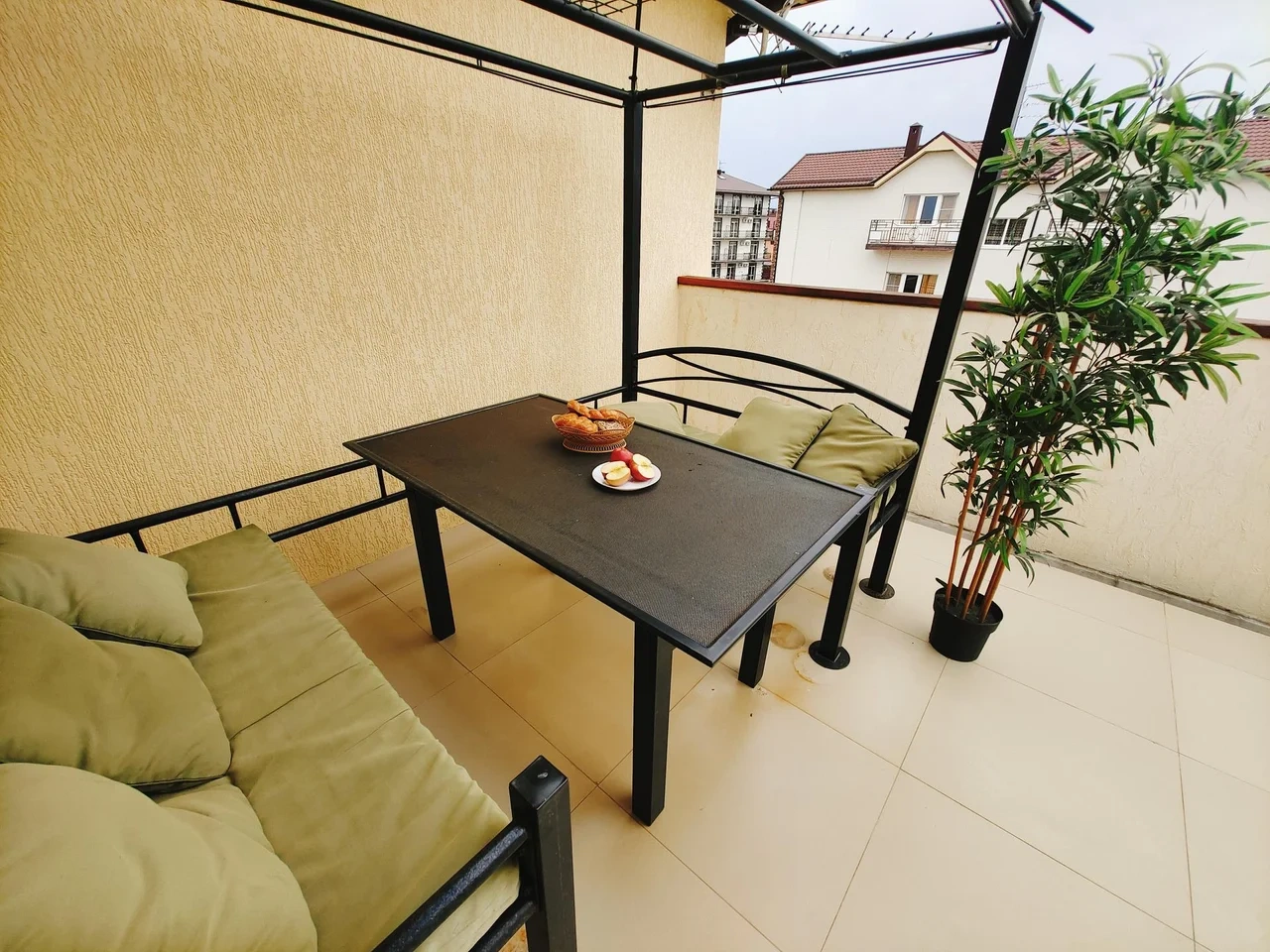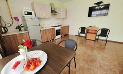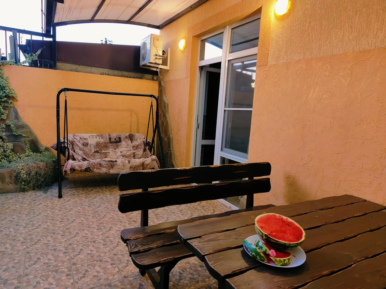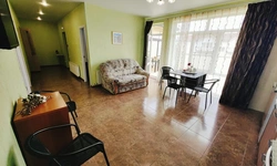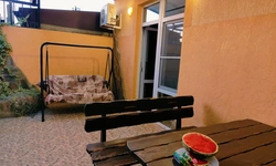 Уютные апартаменты, оснащенные всем необходимым для комфортного отдыха: двуспальная кровать, раскладной двуспальный диван (120х200), кресло-кровать, журнальный столик, шкаф, ТВ, кондиционер. Кухня - обеденная зона, плита, холодильник, микроволновая печь, чайник, посуда. Ванная комната с душевой кабинкой, ванной, стиральной машинкой. Есть собственный дворик с мебелью для отдыха.