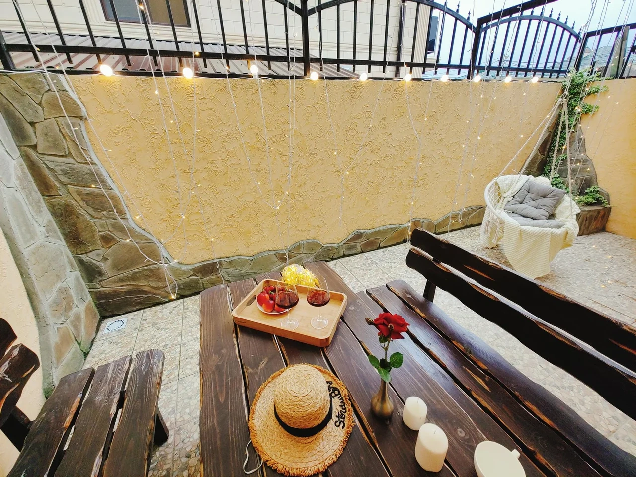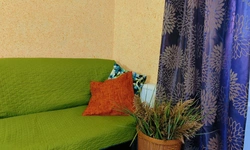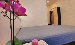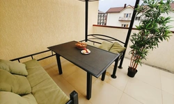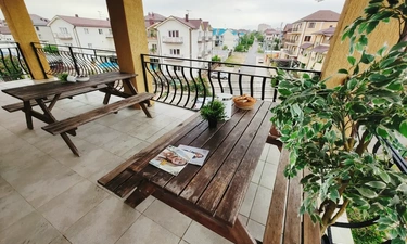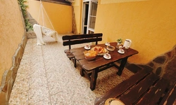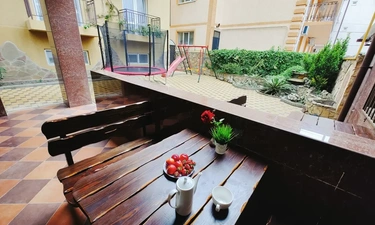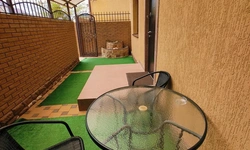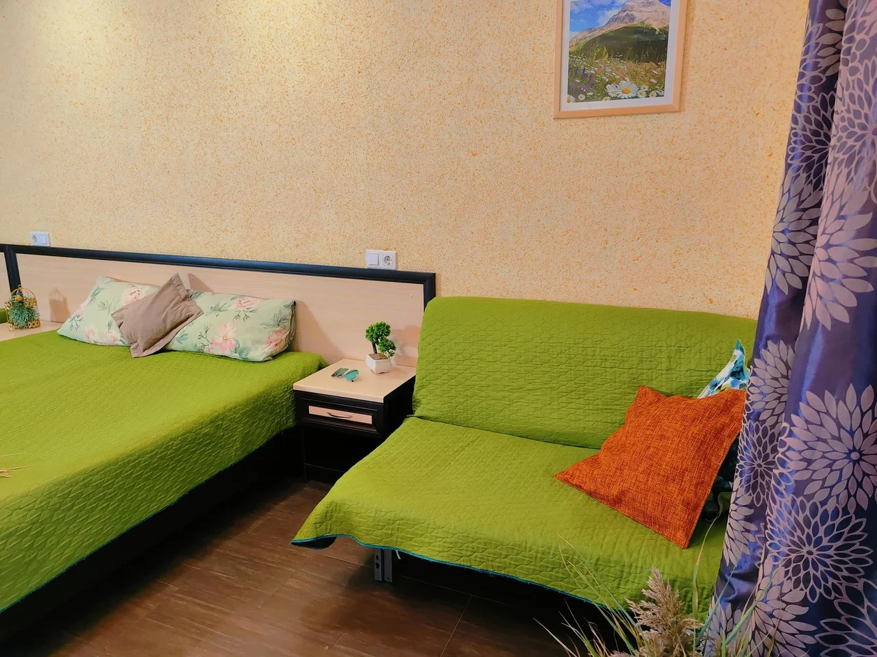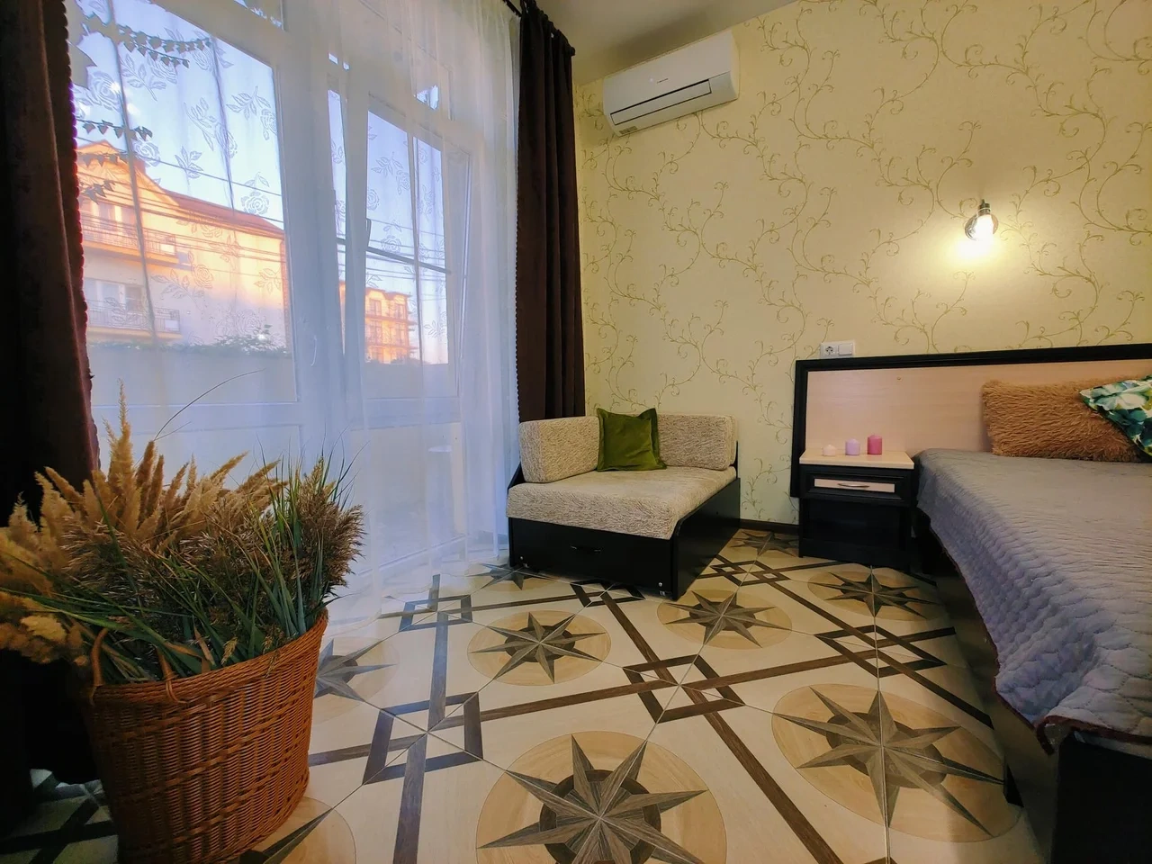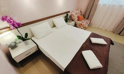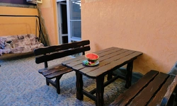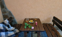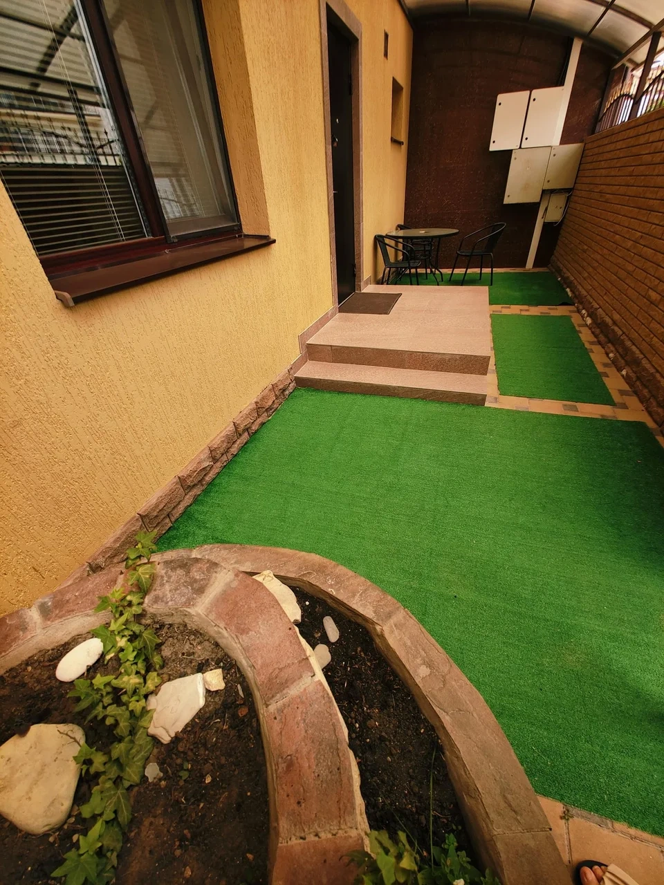 Уютные апартаменты, оснащенные всем необходимым для комфортного отдыха: двуспальная кровать, раскладной двуспальный диван (120х200), кресло-кровать, журнальный столик, шкаф, ТВ, кондиционер. Кухня - обеденная зона, плита, холодильник, микроволновая печь, чайник, посуда. Ванная комната с душевой кабинкой, ванной, стиральной машинкой. Есть собственный дворик с мебелью для отдыха.