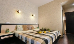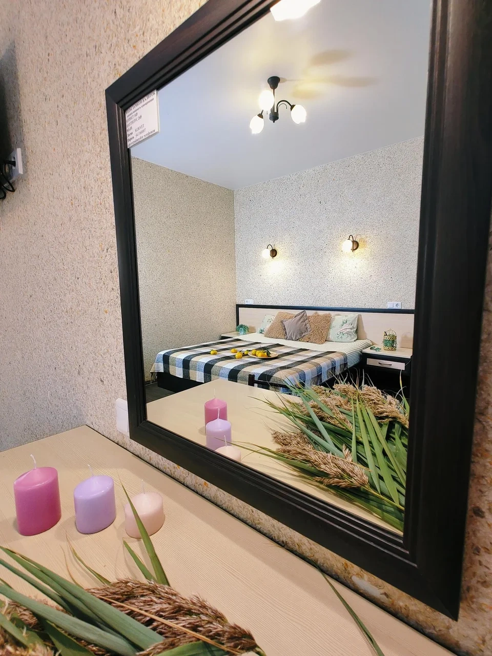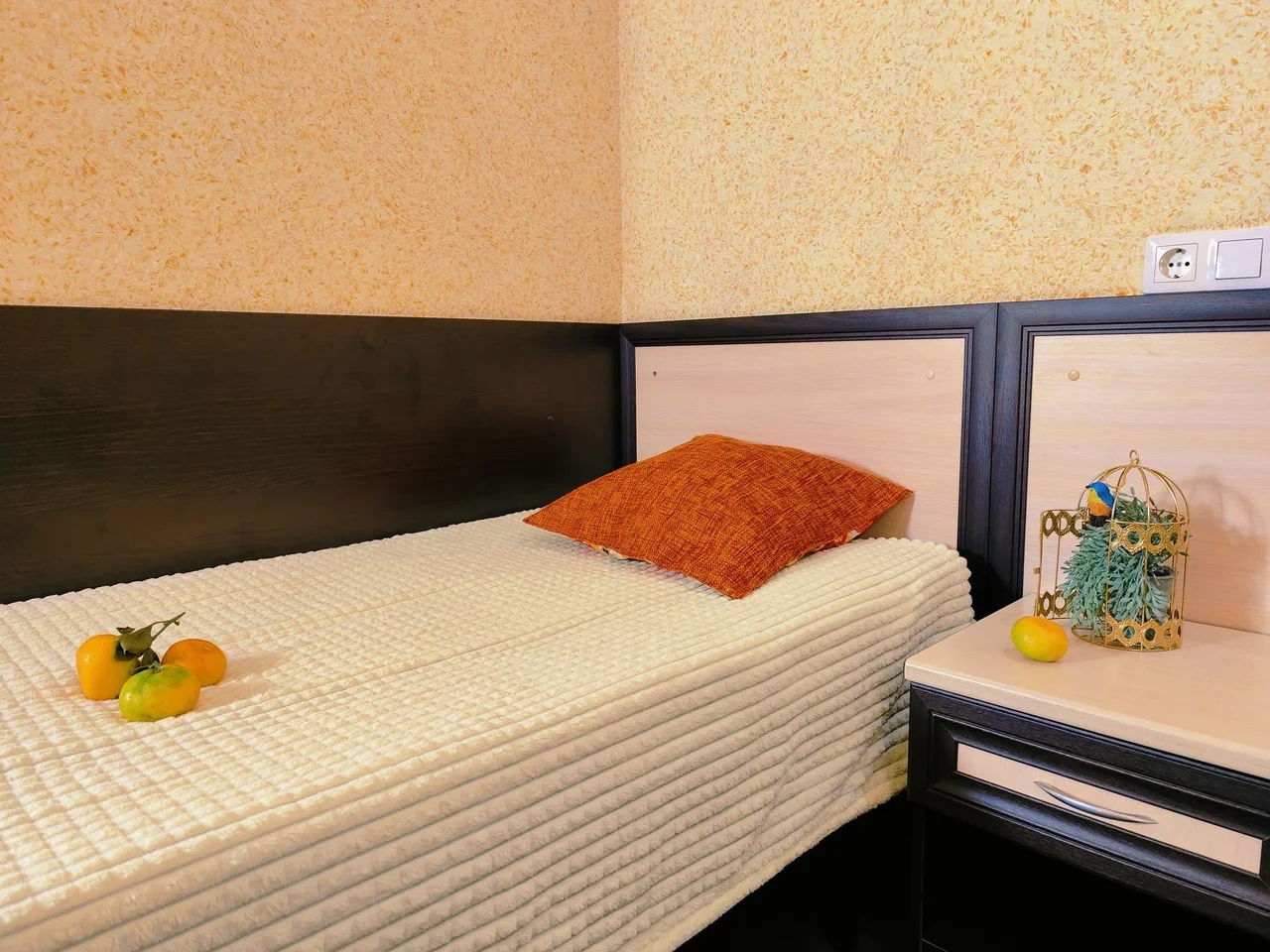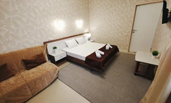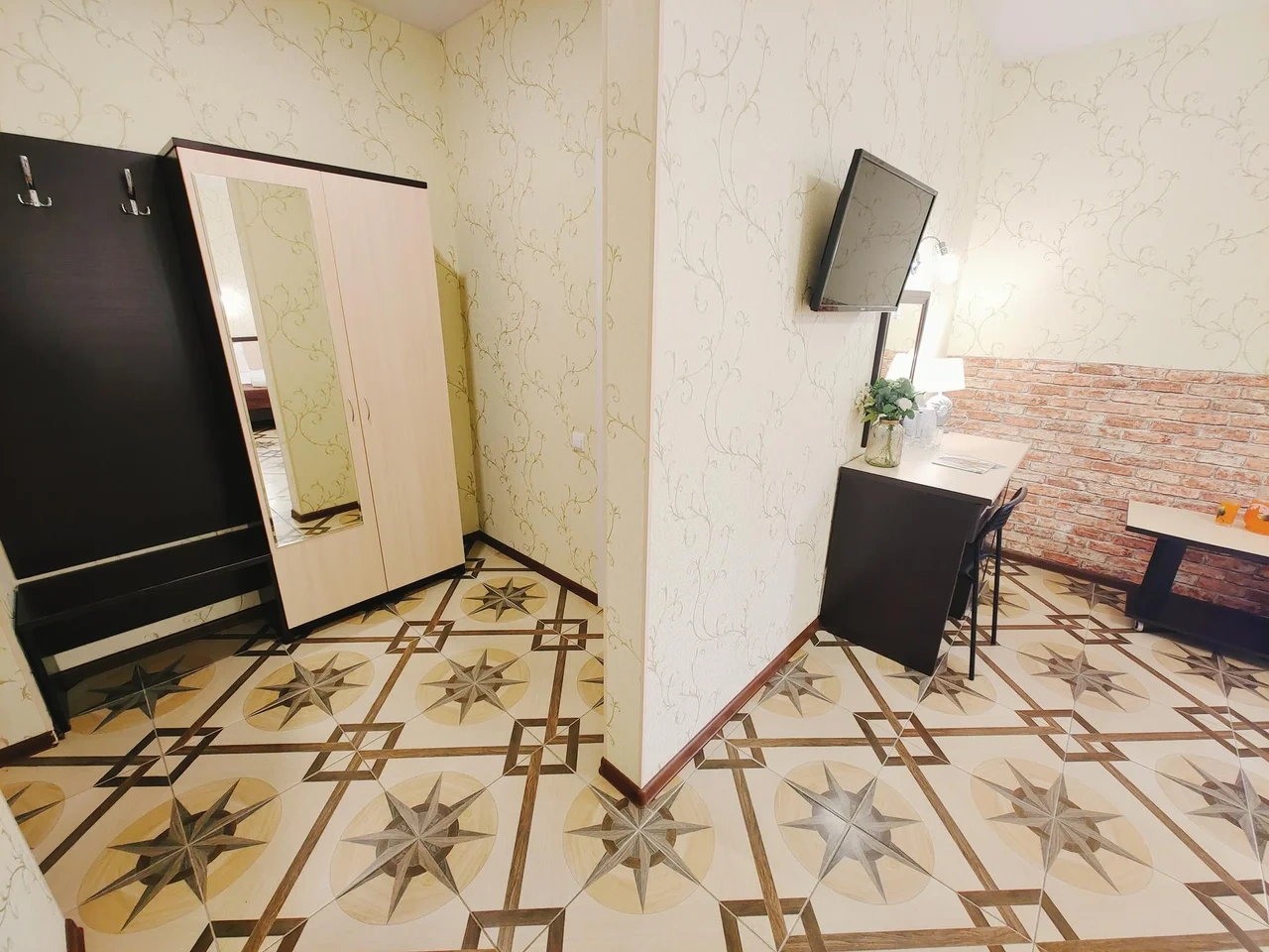 Просторный номер с двуспальной кроватью, прикроватной тумбочкой, туалетным столиком, вешалкой, шкафом. Для вашего комфорта номер оснащен кондиционером, мини-холодильником, телевизором. В номере своя ванная комната с душевой кабинкой, балкон.