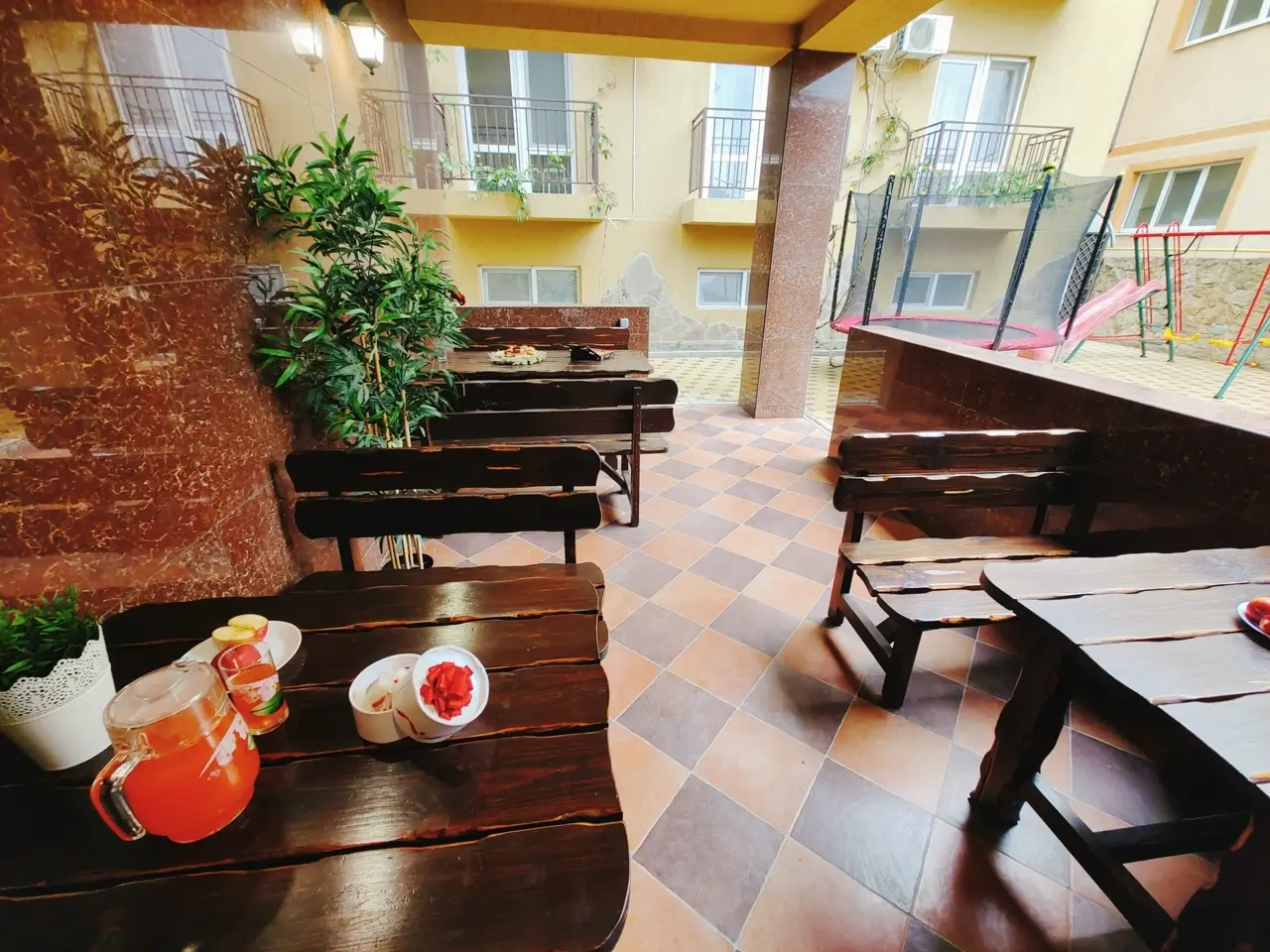 Для Вашего удобства, мы объединили два корпуса. И теперь Гостевой дом состоит из 2-х корпусов - Наутилус (ул.Шембелиди, 10) и Корвет (ул.Шембелиди, 9), (которые разделяются только дорогой). Каждый из корпусов имеет свою изюминку. На территории корпуса Наутилус (номера категории комфорт, полу-люкс) расположен большой бассейн с подогревом, мангальная зона, столовая, а на территории корпуса Корвет (номера категории стандарт)— общая кухня, батут, горки для детей. И для Вас доступна территория и преимущества обоих корпусов.