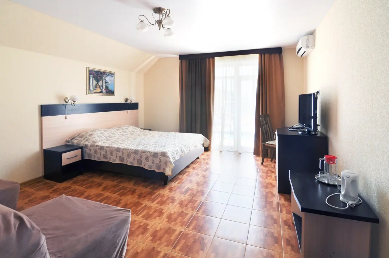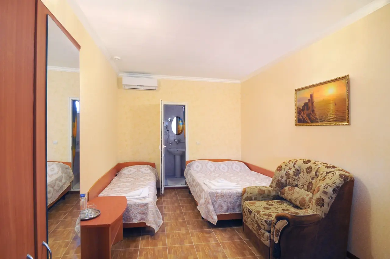 Спальных мест: 3 (возможно доп место платно) Площадь номера: 17 Курени в номере запрещено, разрешено на террасе
