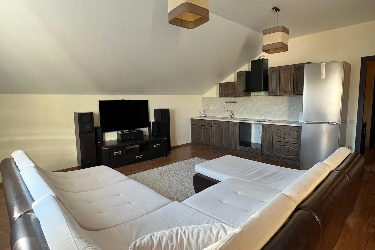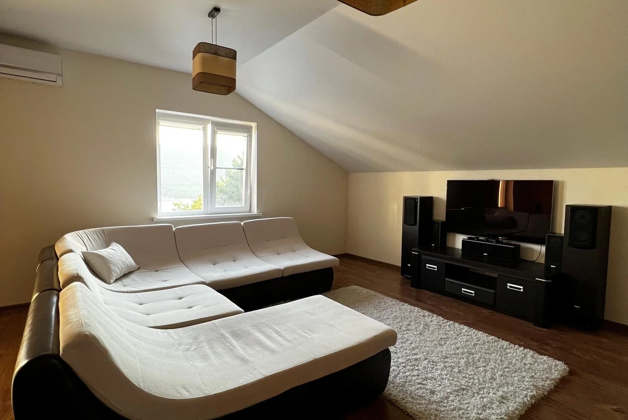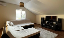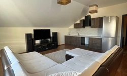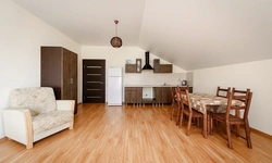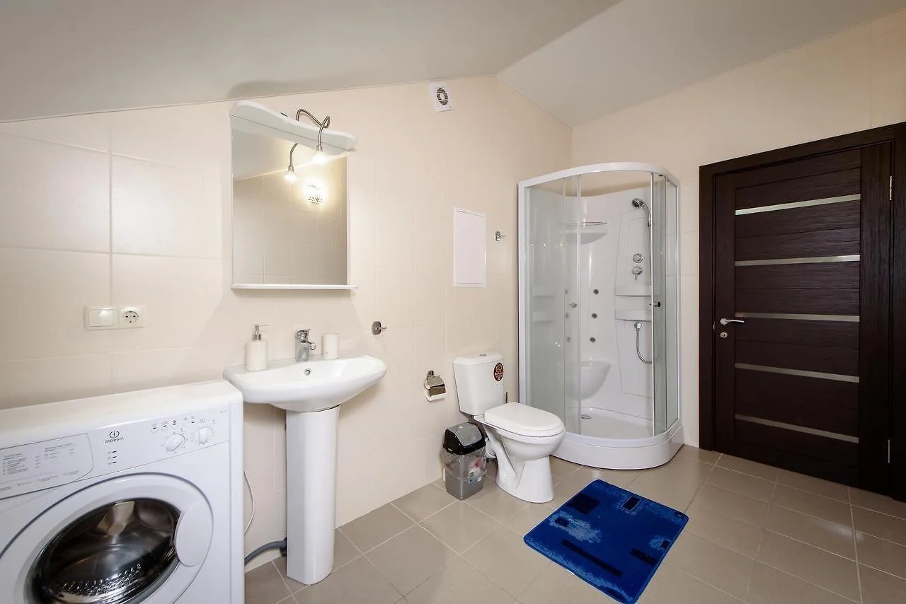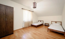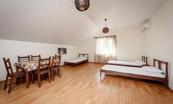 2-ух комнатный номер площадью 69 м² на мансардном этаже верхнего корпуса с балконом, видом на озеро, бассейн, лес вместимостью до 4 человек (2 взрослых+2 детей или 3 взрослых). В номере: 2-ух спальная кровать, большой угловой нераскладной диван для одного взрослого или двоих детей, большой шкаф для одежды. В каждой комнате кондиционер, москитные сетки, спутниковое TV, бесплатный wi-fi. Кухонный гарнитур с варочной панелью, большой холодильник, стол на 6 персон, чайник, посуда на 4 персоны (тарелки, чашки, ложки, вилки, ножи, доска разделочная, кастрюля, сковорода). Санузел, душевая кабина, стиральная машина, тапочки. Фен предоставляется по запросу. В стоимость проживания также входит: посещение открытого бассейна, пользование беседкой, парковка. Подарок в день рождения, в честь свадьбы. Возможность заказать горячее питание 24/7