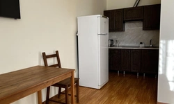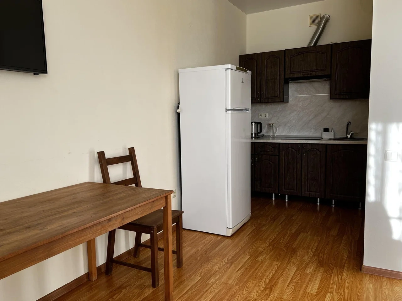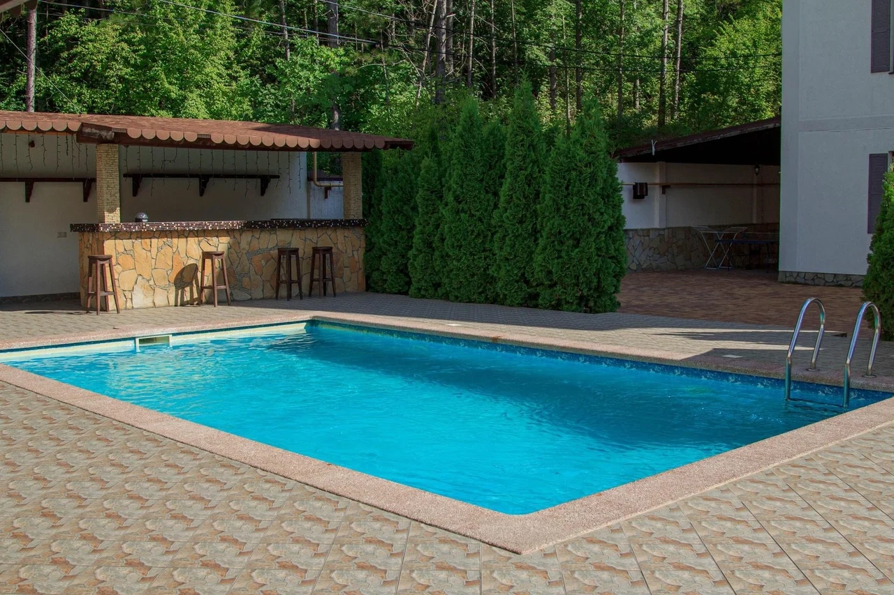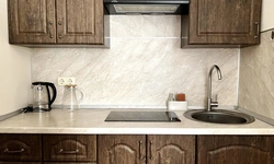 Номер площадью 37 м² на 3 этаже верхнего корпуса с балконом, видом на бассейн вместимостью до 4 человек. (Возможно проживание с питомцем до 5 кг) В номере: два 2-ух местных раскладных дивана, шкаф для одежды, кондиционер, москитные сетки, спутниковое TV, бесплатный wi-fi. Кухонный гарнитур с варочной панелью, холодильник, стол, стулья, чайник, посуда для 4 персон (тарелки, чашки, ложки, вилки, ножи, доска разделочная, кастрюля, сковорода). Санузел, душевая кабина, стиральная машина, тапочки. Фен предоставляется по запросу. В стоимость проживания также входит: посещение открытого бассейна, пользование беседкой, парковка. Подарок в день рождения, в честь свадьбы. Возможность заказать горячее питание 24/7