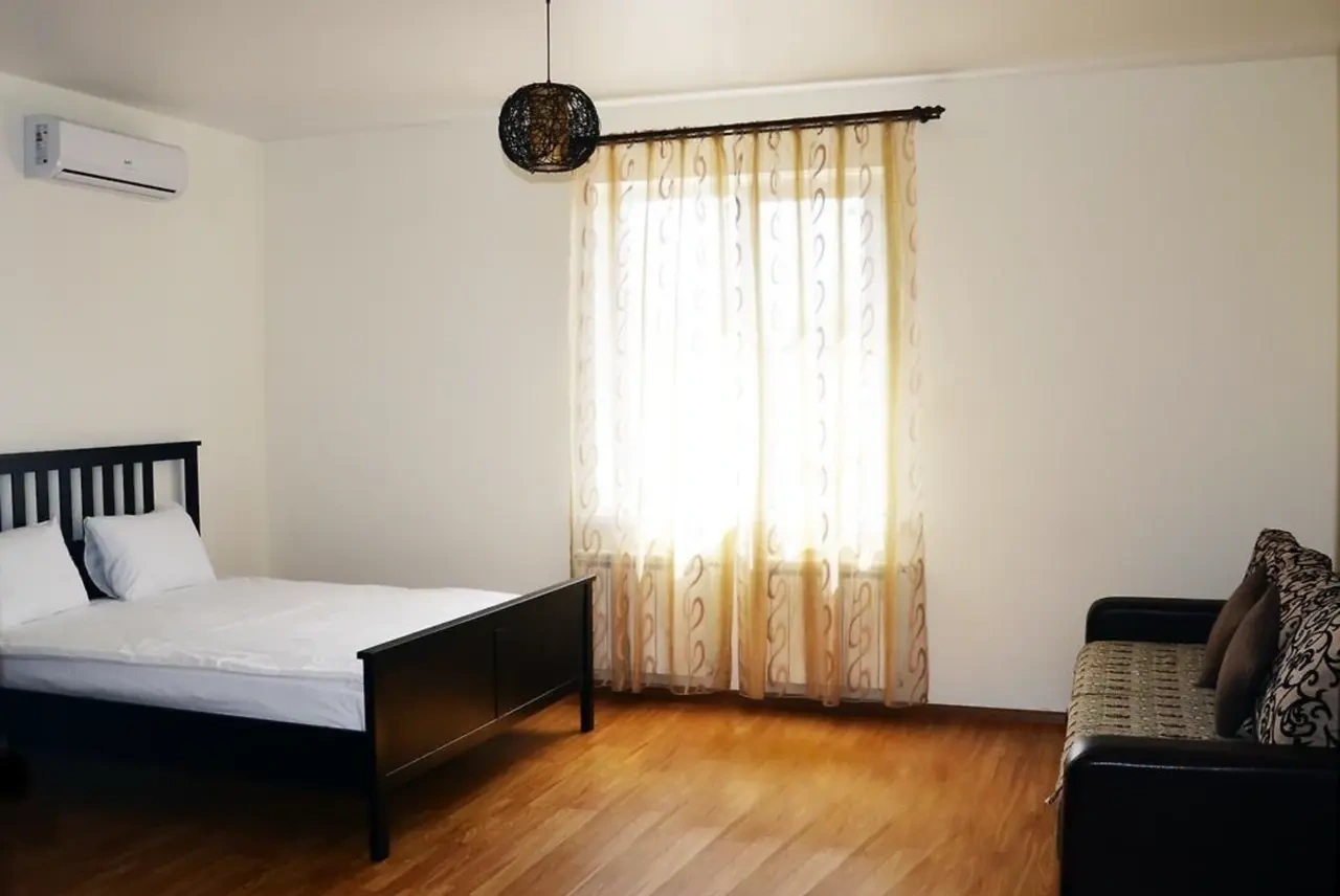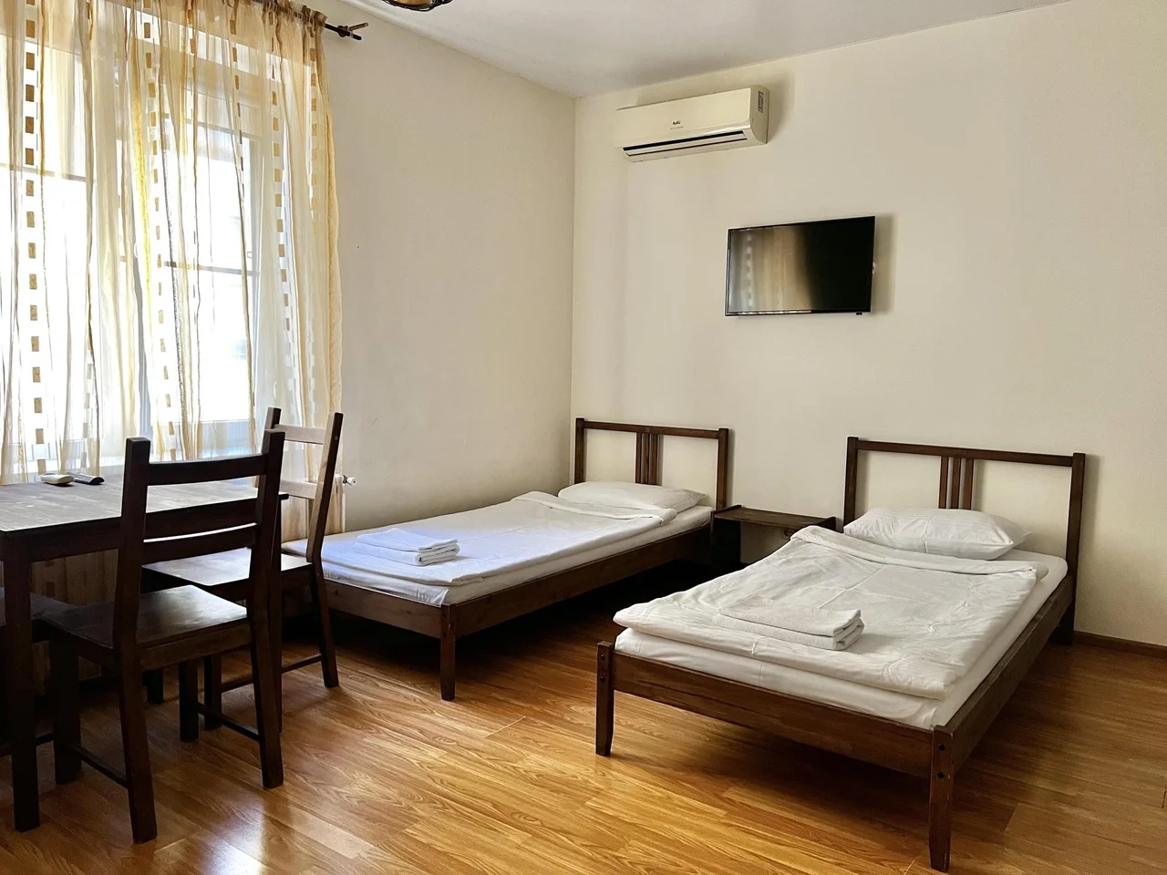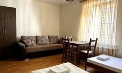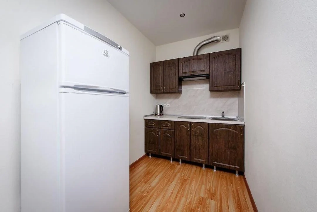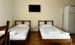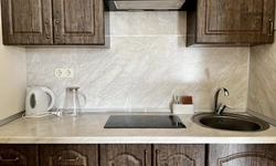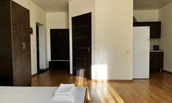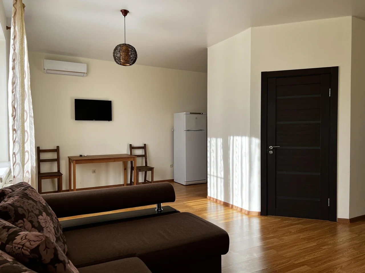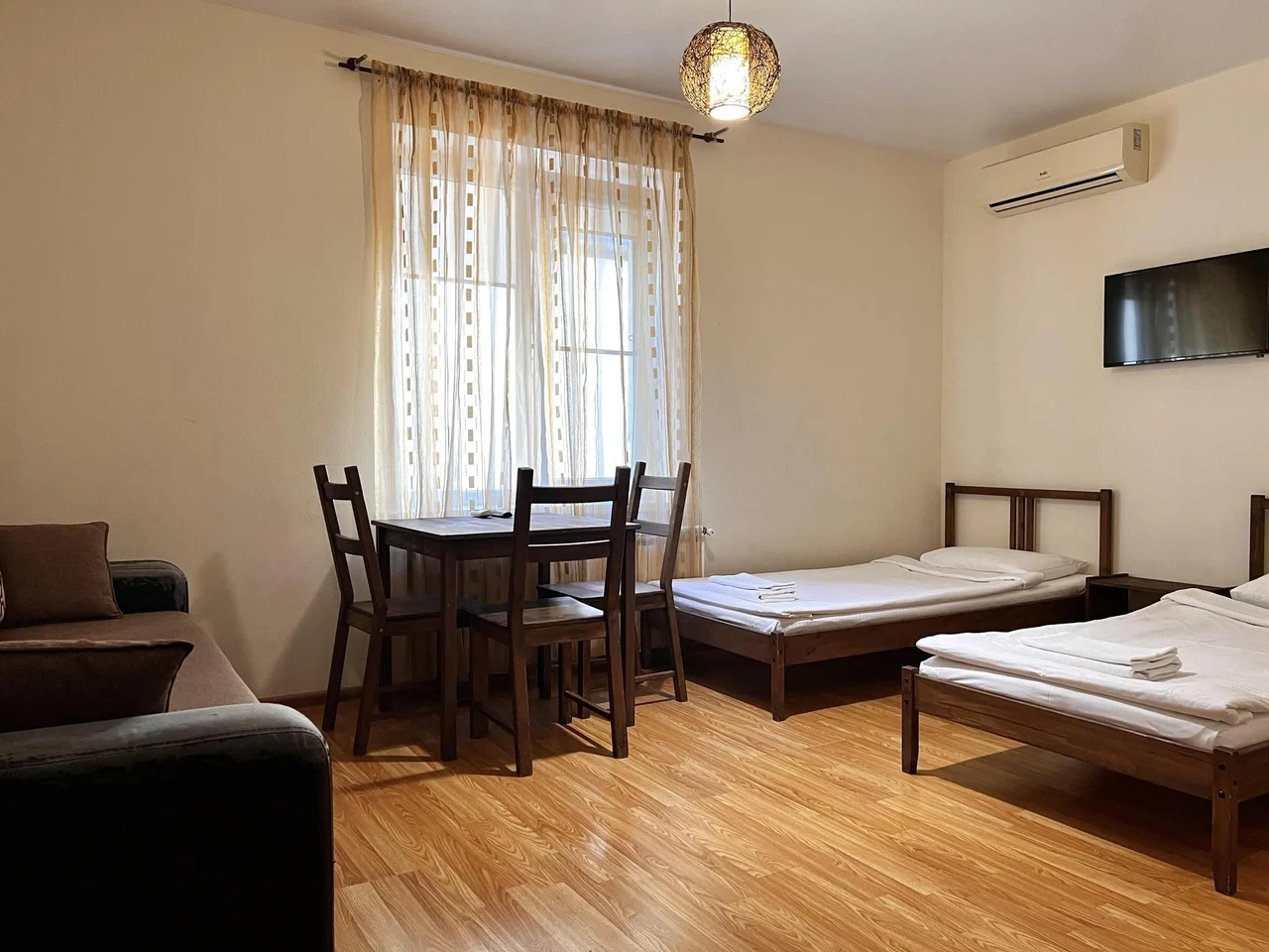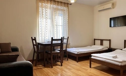 Два однокомнатных номера площадью 26,1 и 27,2 м² на 1 этаже верхнего корпуса с видом на внутренний двор вместимостью до 4 человек. Без балкона. В номере: 2 раздельные односпальные кровати, 2-ух местный раскладной диван, шкаф для одежды, кондиционер, москитные сетки, спутниковое TV, бесплатный wi-fi. Кухонный гарнитур с варочной панелью, холодильник, стол, стулья, чайник, посуда для 4 персон (тарелки, чашки, ложки, вилки, ножи, доска разделочная, кастрюля, сковорода). Санузел, душевая кабина, стиральная машина, тапочки. Фен предоставляется по запросу. В стоимость проживания также входит: посещение открытого бассейна, пользование беседкой, парковка. Подарок в день рождения, в честь свадьбы. Возможность заказать горячее питание 24/7