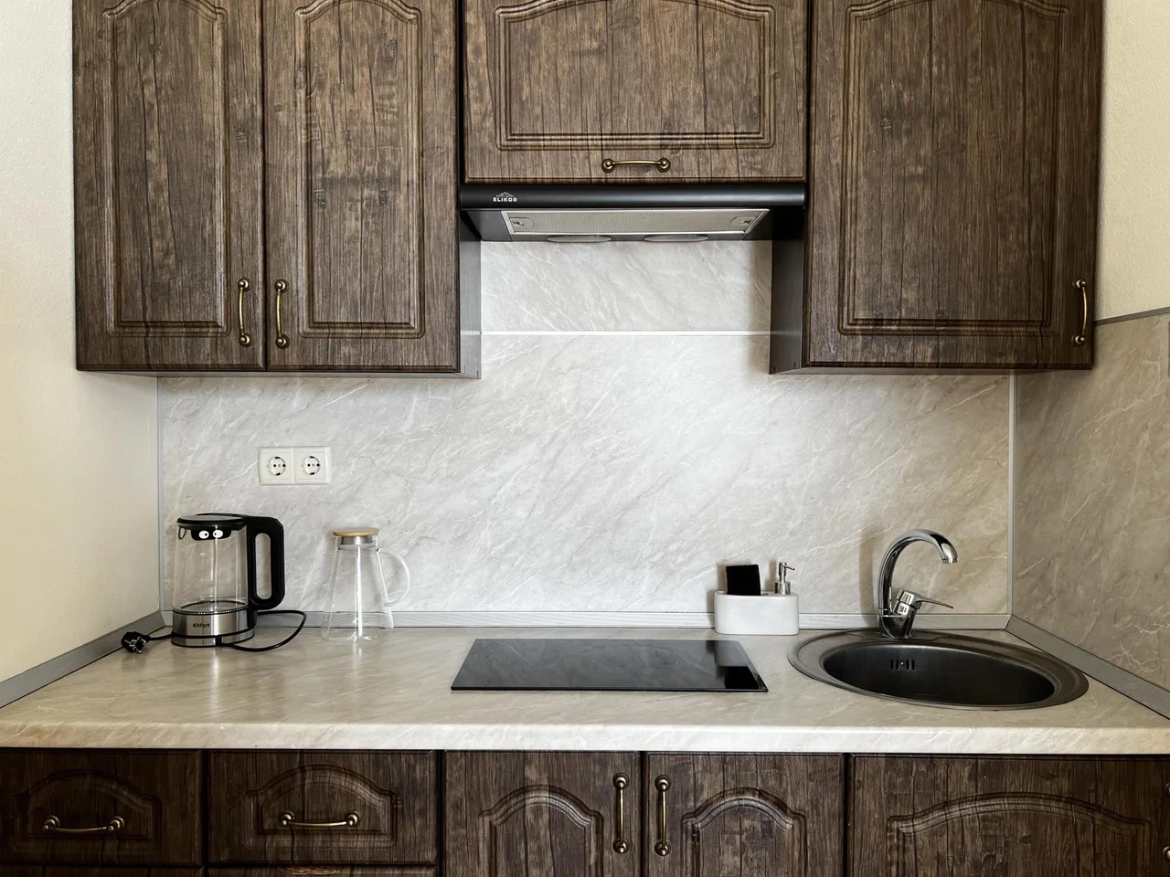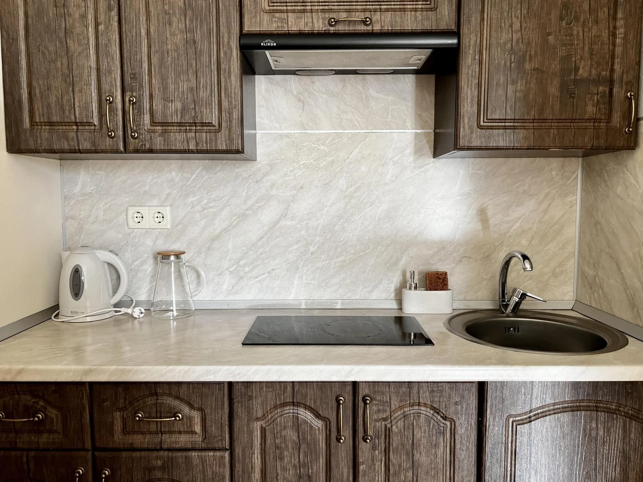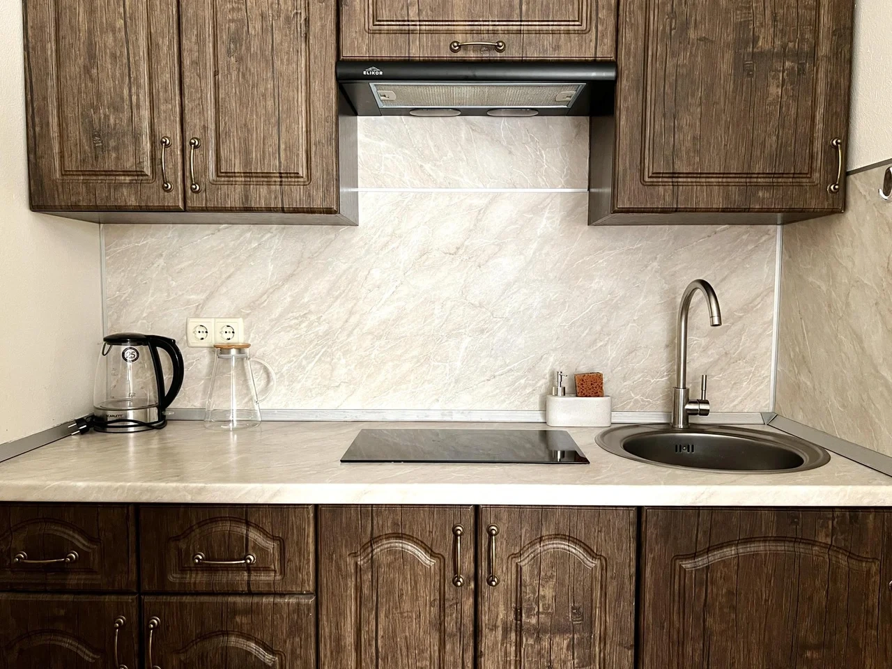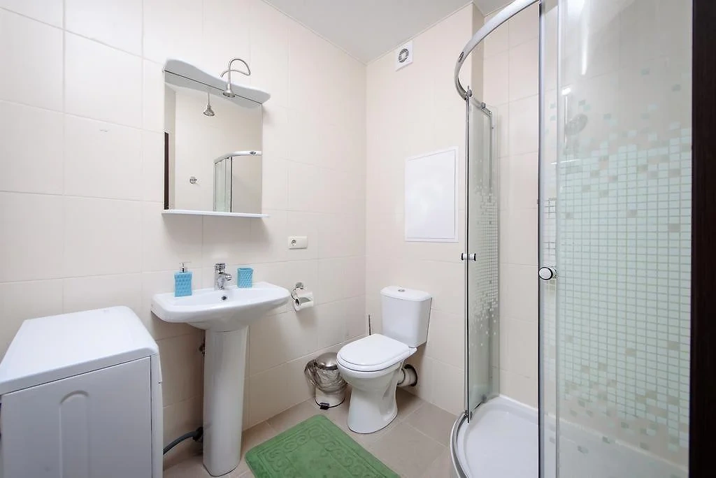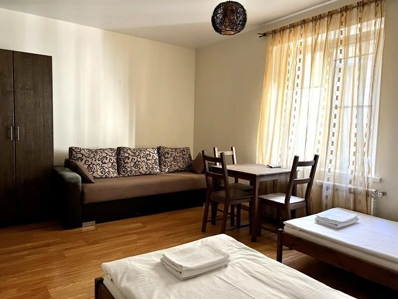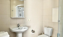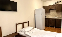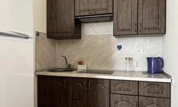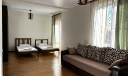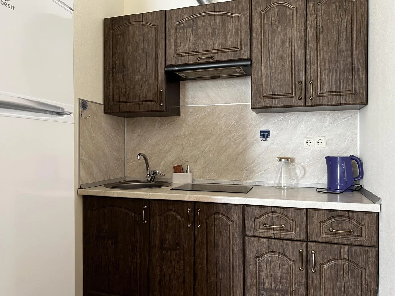 Два однокомнатных номера площадью 26,1 и 27,2 м² на 1 этаже верхнего корпуса с видом на внутренний двор вместимостью до 4 человек. Без балкона. В номере: 2 раздельные односпальные кровати, 2-ух местный раскладной диван, шкаф для одежды, кондиционер, москитные сетки, спутниковое TV, бесплатный wi-fi. Кухонный гарнитур с варочной панелью, холодильник, стол, стулья, чайник, посуда для 4 персон (тарелки, чашки, ложки, вилки, ножи, доска разделочная, кастрюля, сковорода). Санузел, душевая кабина, стиральная машина, тапочки. Фен предоставляется по запросу. В стоимость проживания также входит: посещение открытого бассейна, пользование беседкой, парковка. Подарок в день рождения, в честь свадьбы. Возможность заказать горячее питание 24/7