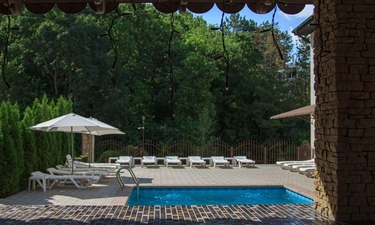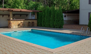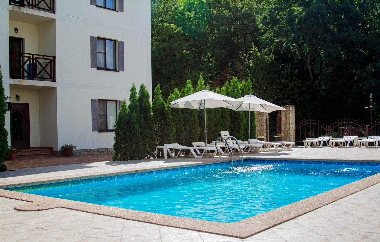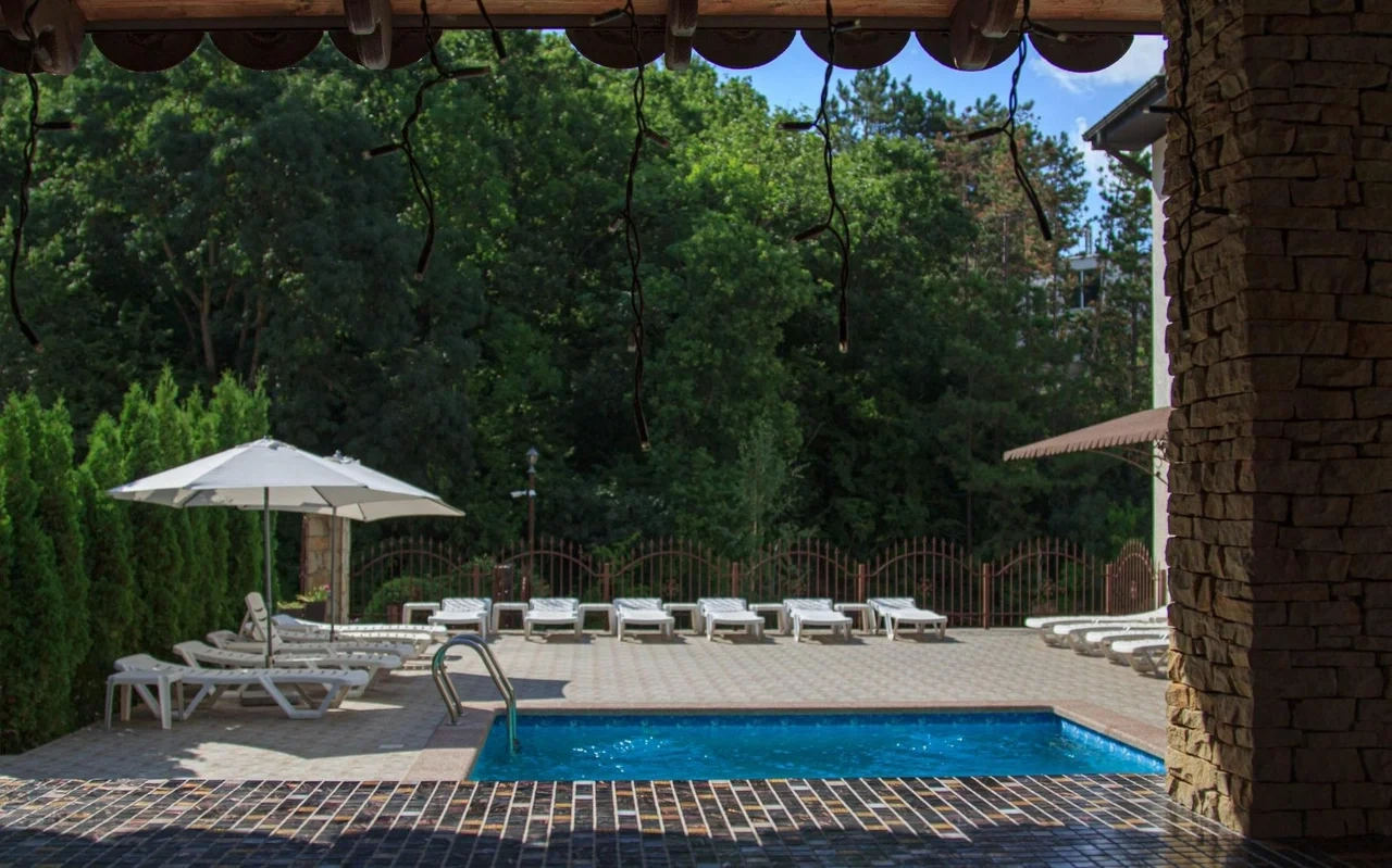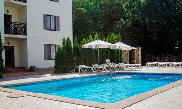Два однокомнатных номера площадью 26 и 32,9 м² на 1 этаже верхнего корпуса с видом на открытый бассейн вместимостью до 4 человек. Без балкона. В номере: 2 раздельные односпальные кровати, 2-ух местный раскладной диван, шкаф для одежды, кондиционер, москитные сетки, спутниковое TV, бесплатный wi-fi. Кухонный гарнитур с варочной панелью, холодильник, стол, стулья, чайник, посуда для 4 персон (тарелки, чашки, ложки, вилки, ножи, доска разделочная, кастрюля, сковорода). Санузел, душевая кабина, стиральная машина, тапочки. Фен предоставляется по запросу. В стоимость проживания также входит: посещение открытого бассейна, пользование беседкой, парковка. Подарок в день рождения, в честь свадьбы. Возможность заказать горячее питание 24/7