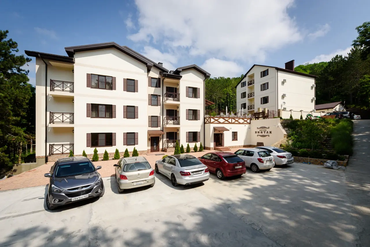 Отель "Винтаж" расположен в центре живописного места Абрау-Дюрсо. Расстояние до пляжа составляет 4 километра - это 15 минут на автомобиле.