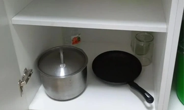 На кухне: столовые приборы, необходимая посуда, кастрюли, сковороды!
