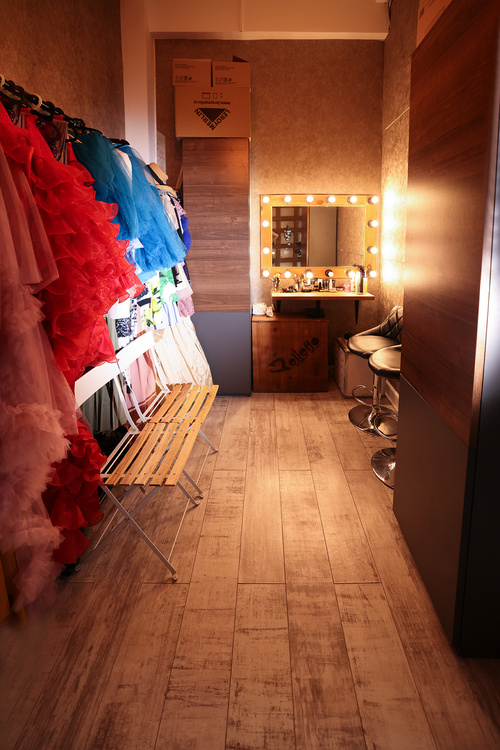- штатный или дизайнерский гардероб студии, гардероб модели и аксессуары стилиста студии